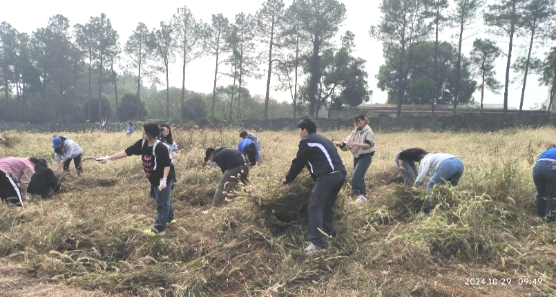 “纸上得来终觉浅,绝知此事要躬行。” 这句古训深刻地揭示了理论与实践相结合的重要性。在10月29日至11月1日的这段时间里,在杨秀霞、谢凯柳等老师的悉心指导下,员工们踏入了学校的生态科技园,开启了实习之旅的第一篇章。在老师示范和指导下,进行了划地、除草、翻土、播种、撒农药等一系列农业生产活动,亲身体验了农业生产的艰辛与乐趣,践行了勤奋、求实的农大校训。