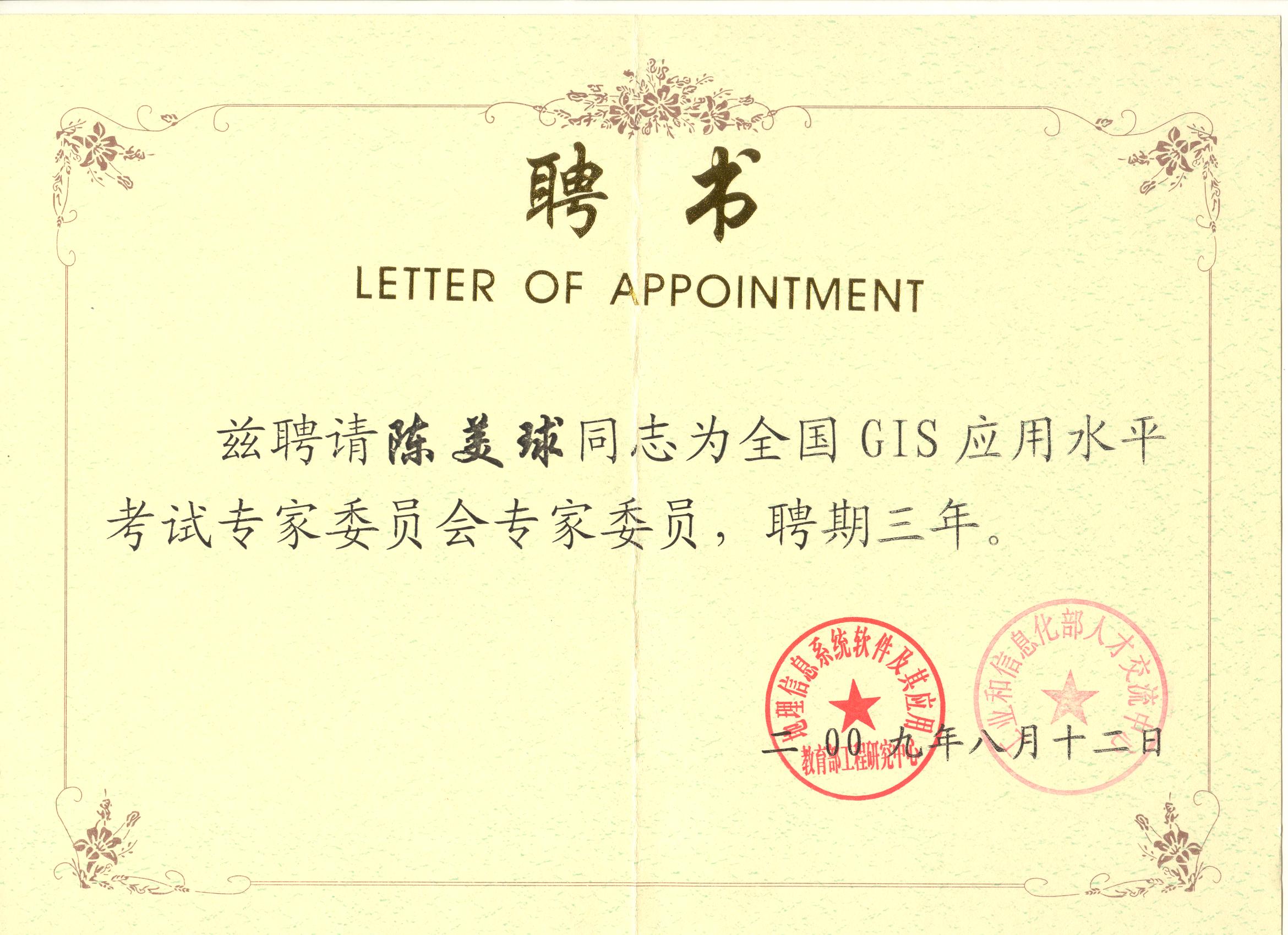 2009年8月12-13日,“全国GIS应用水平考试专家委员会成立大会暨第一次考试工作会议”在云南昆明隆重召开,公司陈美球教授被聘为全国GIS应用水平考试专家委员会专家委员。
