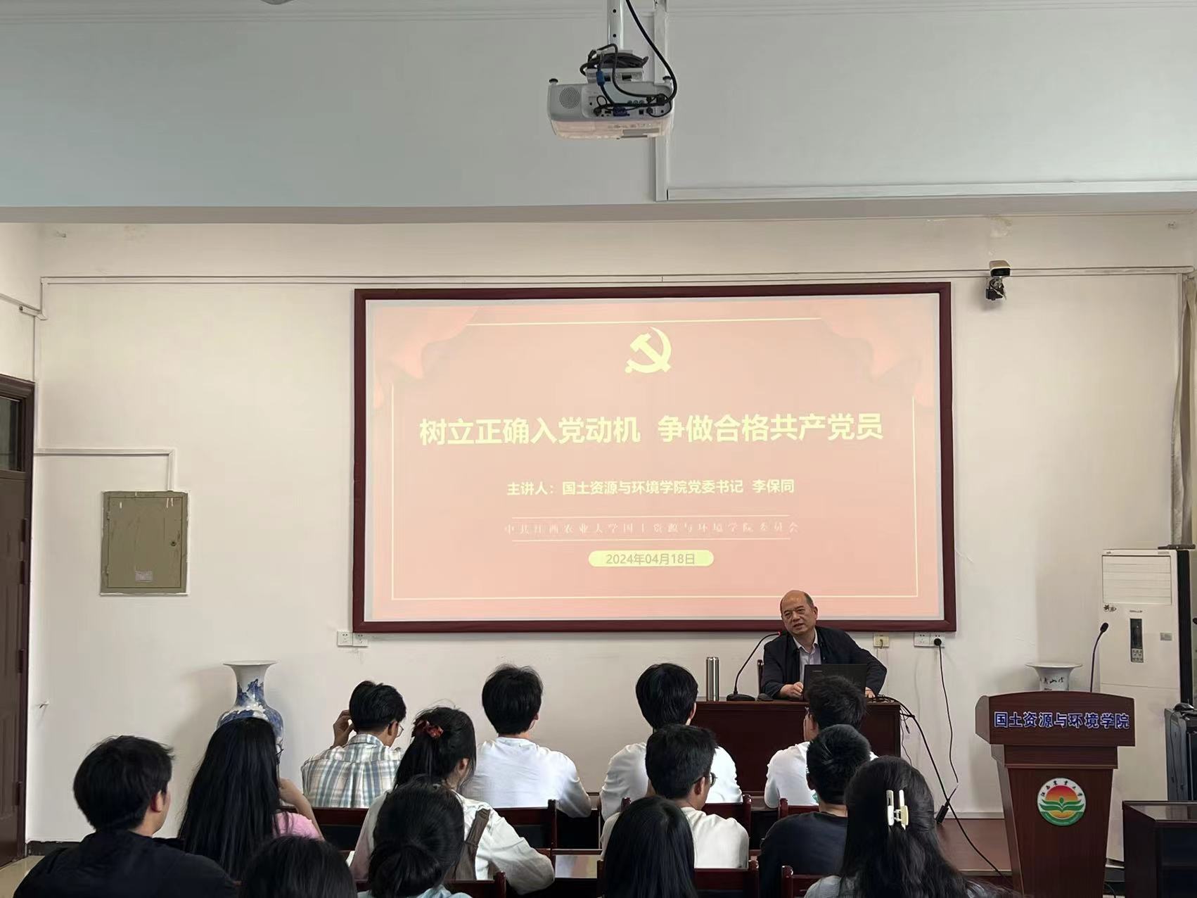随后,李保同书记为大家带来了题为《树立正确的入党动机,争做合格共产党员》的专题党课。他深入解读了党的认识、党员的权利和义务,以及入党动机的重要性。他强调,作为共产党员,要始终以人民为中心,勇于承担责任,不怕吃亏,勇于牺牲,努力为人民多做贡献。李书记还特别强调了入党不是终点,而是新的起点。他鼓励全体发展对象要不忘初心,坚守信仰,牢记使命,为实现中国特色社会主义伟大事业而努力奋斗。