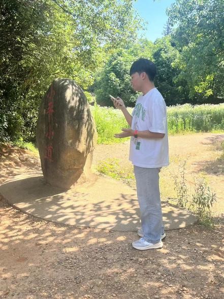 本科生第一党支部优秀党员徐伟同志结合自身旅游专业优势,详细向大家讲述了小平小道的由来和历史背景,使大家对这段历史有了更深入的了解。