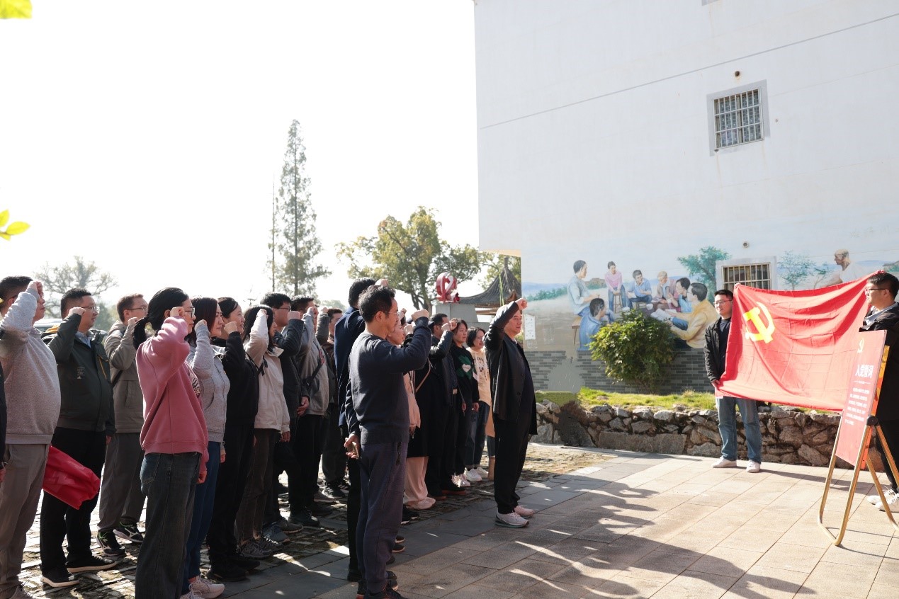 参观结束后,在公司党委负责人的领誓下,全体党员面向鲜红的党旗,举起右拳,重温入党誓词。一字一句,庄严而豪迈,“我宣誓,我志愿加入中国共产党,拥护党的纲领,遵守党的章程,履行党员义务……” 铿锵有力的宣誓声回望入党初心,感受共产党人为共产主义事业奋斗终身的决心,升华对党和国家的情感,提振干事创业的精气神。