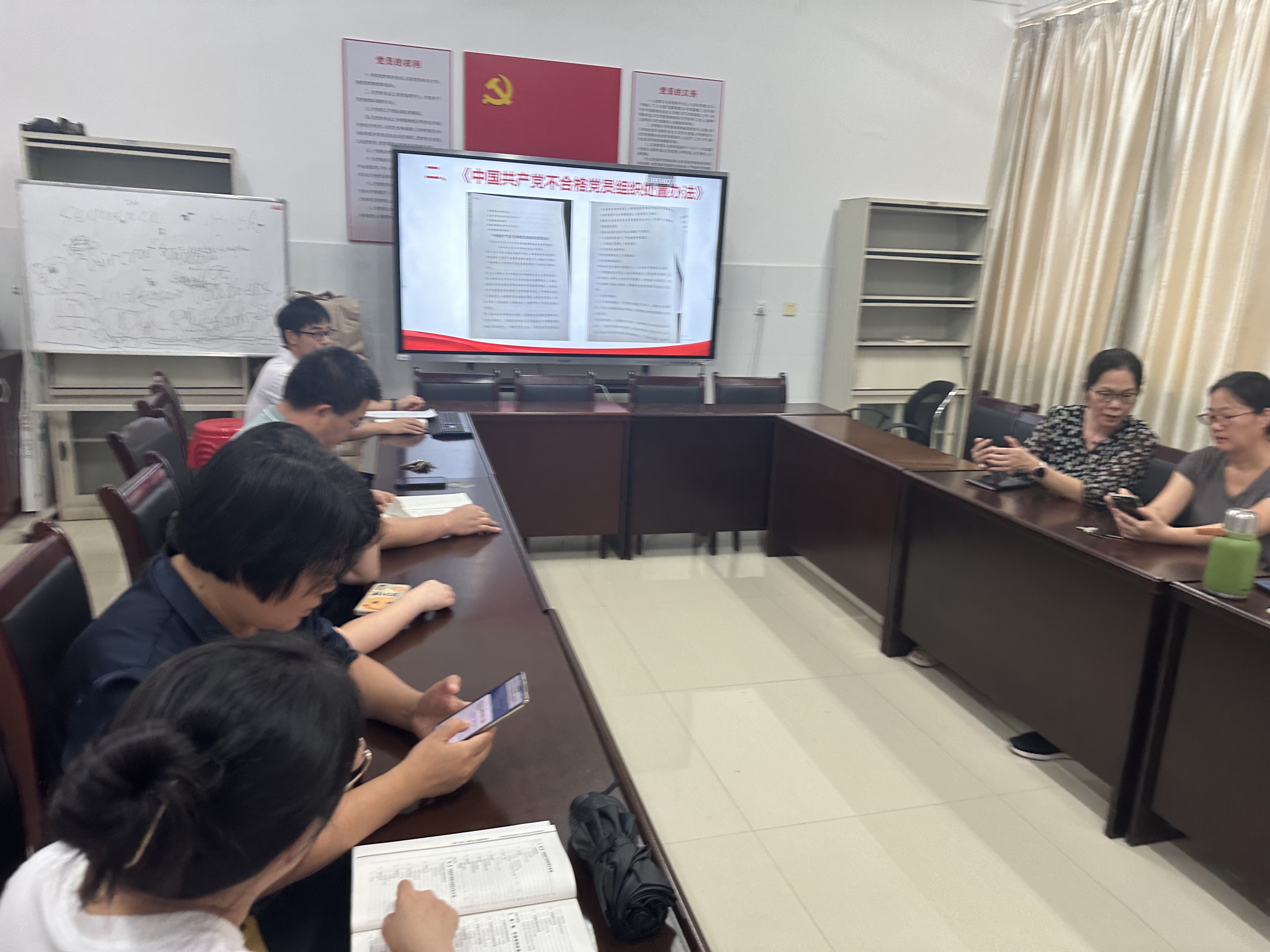 首先,李丹萍书记主持了“《中国共产党不合格党员组织处置办法》”为主题的党员大会。