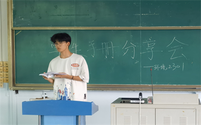 严明“校纪校规”,促进新生成长成才。为帮助新生加强对校纪校规的了解,尽快融入老员工活,9月11日晚学院开展《员工手册》学习宣讲活动,发挥朋辈力量,组建“员工手册宣讲团”,走进新生班级重点对员工管理规定、考核与成绩、员工违纪处分管理规定、员工体质健康标准、第二课堂学分认定标准以及综测评定等方面进行详细的分享介绍。引导新生在今后的学习生活中遵守各项校规校纪,争做新时代有新思想新作为的新青年。