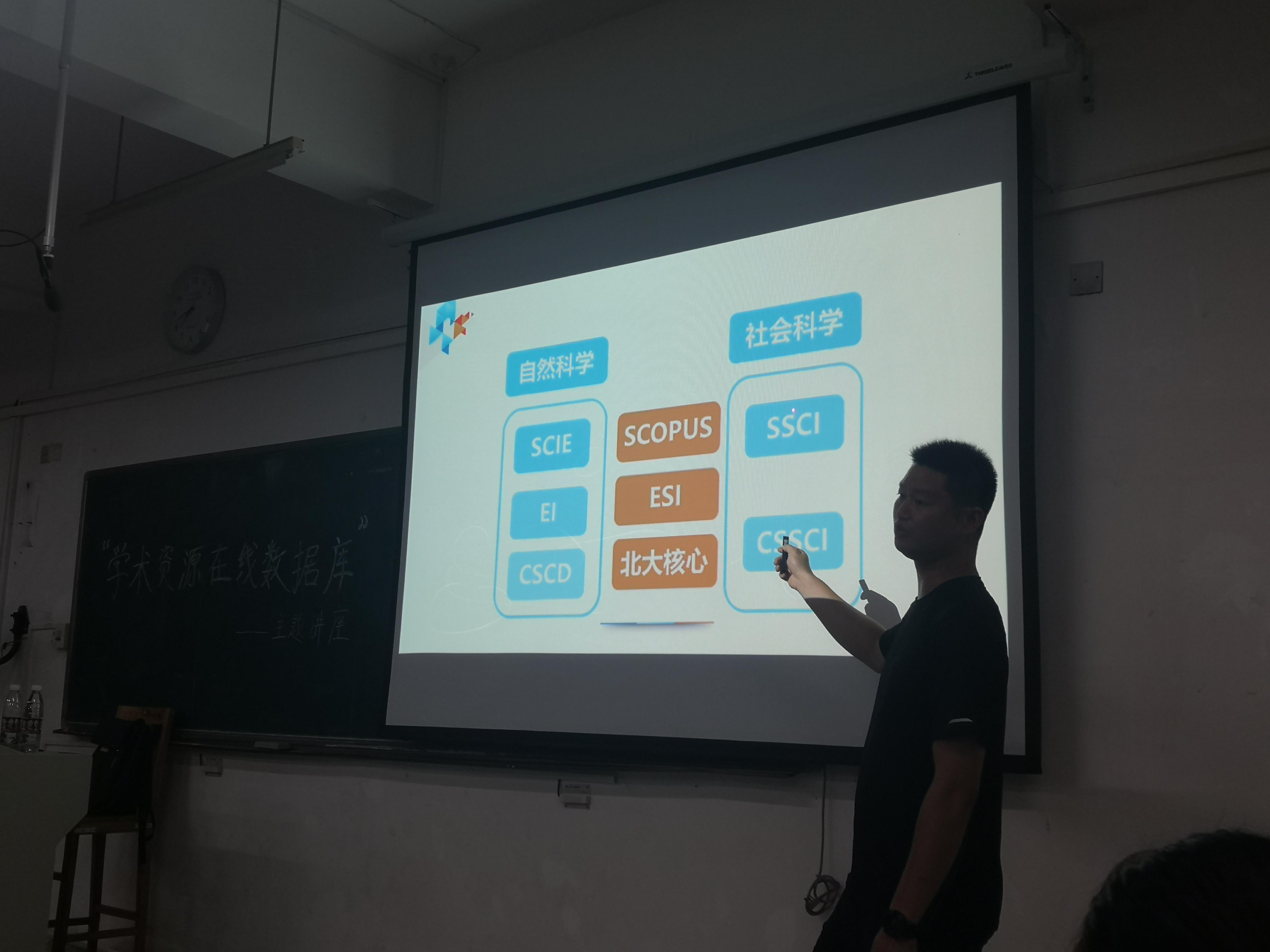 在主题讲座上,汪老师向同学们介绍了当前主要的学术资源类别及其对应的主要收纳内容和文献获取途径,并结合自身学术经历和工作经历向同学们分享了从检索文献到论文投稿的整个流程和如何搜索本学科的公认核心期刊等内容。