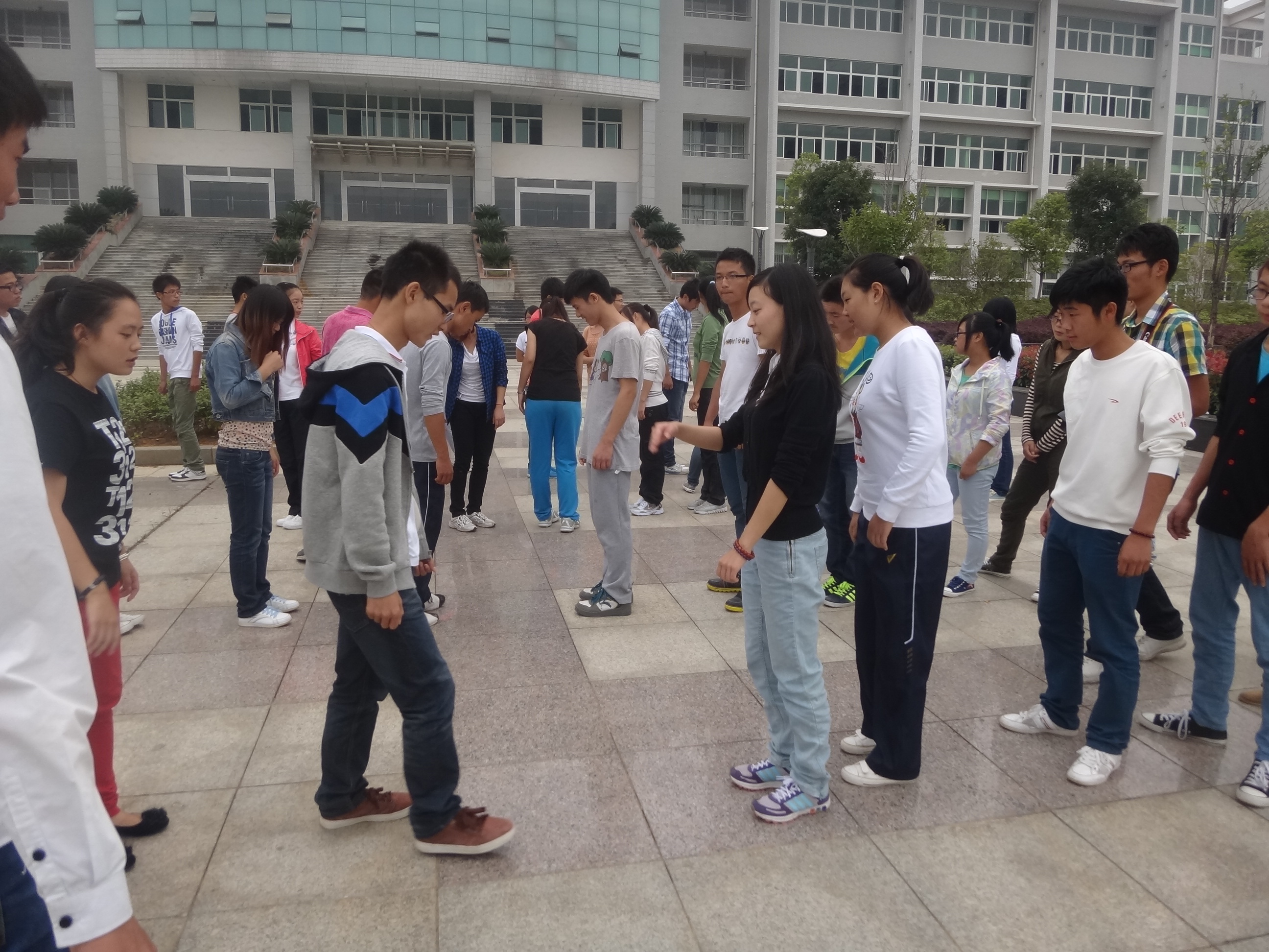 活动分两次开展,上午是由办公室、青工部、体育部、女生部和科技实践部组成的第一小组,下午的第二小组则是由纪检部、宣传部、学习部、文艺部和生活部组成。活动主要通过玩游戏的方式让大家相互认识、信任彼此、彼此谦让进而提高队伍的凝聚力。活动以集体跑步作为开始,在同学们围圈做完自我介绍后通过一个名为“007”的游戏来考验大家对整个团体的熟悉程度,并对表现不好的同学予以一定程度的惩罚。“交通堵塞”、“默契报数”、“解手链”等一系列游戏无一不让大家狂欢,每个游戏都需要团队合作,在领导与被领导之间做出抉择,同时好药学会爱与被爱,大家积极的态度和认真的心态迎来了一次又一次胜利,阵阵掌声与欢呼声成为了他们最好的战利品。让同学们最淡定收获最多的还是最后的“走盲径”,在学长学姐们的带领下同学们在闭着双眼的情况下走过了一段蜿蜒崎岖的路,学到的不仅仅是信任,更多的是爱与关怀。
