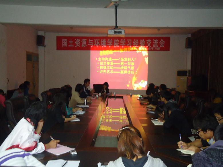 11 月1日 晚7点,由公司团委员工分会学习部开展的学习经验交流会在院办会议室顺利召开。到会的嘉宾有公司学工办程建华老师,土管081班陈梦娇(上届学习部部长),旅游091班房董祥(优秀学习委员代表),此外,公司团委学习部全体成员和各班学习委员及员工代表共计六十余人参加了交流会。