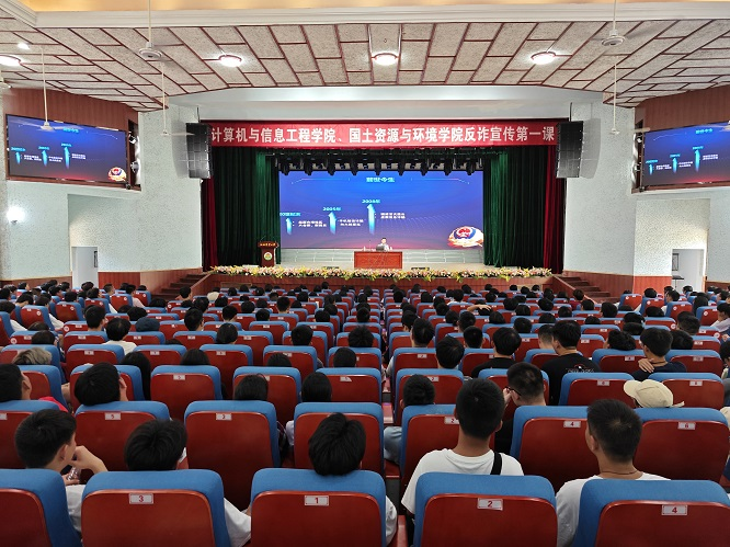 为深化防范电信网络诈骗宣传教育工作,从源头上筑牢新生反诈意识,构建平安和谐校园环境,9月11日,国土院与计信院联合开展新生反诈第一课,特邀请南昌市公安局反诈讲师团徐加明警官给890名2023级新生讲解反诈知识。