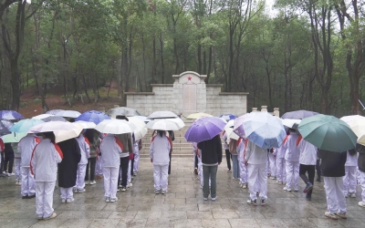 走访红色教育基地,坚定员工理想信念。为缅怀革命先烈、传承红色基因,11月11日,全体学员冒雨徒步前往方志敏烈士陵园,学员代表在方志敏烈士雕像前深情朗诵《可爱的中国》,在方志敏烈士墓前默哀悼念,深切缅怀方志敏同志英勇无畏的顽强斗志,感怀先烈的丰功伟绩,此行更加坚定了同学们积极向党组织靠拢、为共产主义事业奋斗的决心。