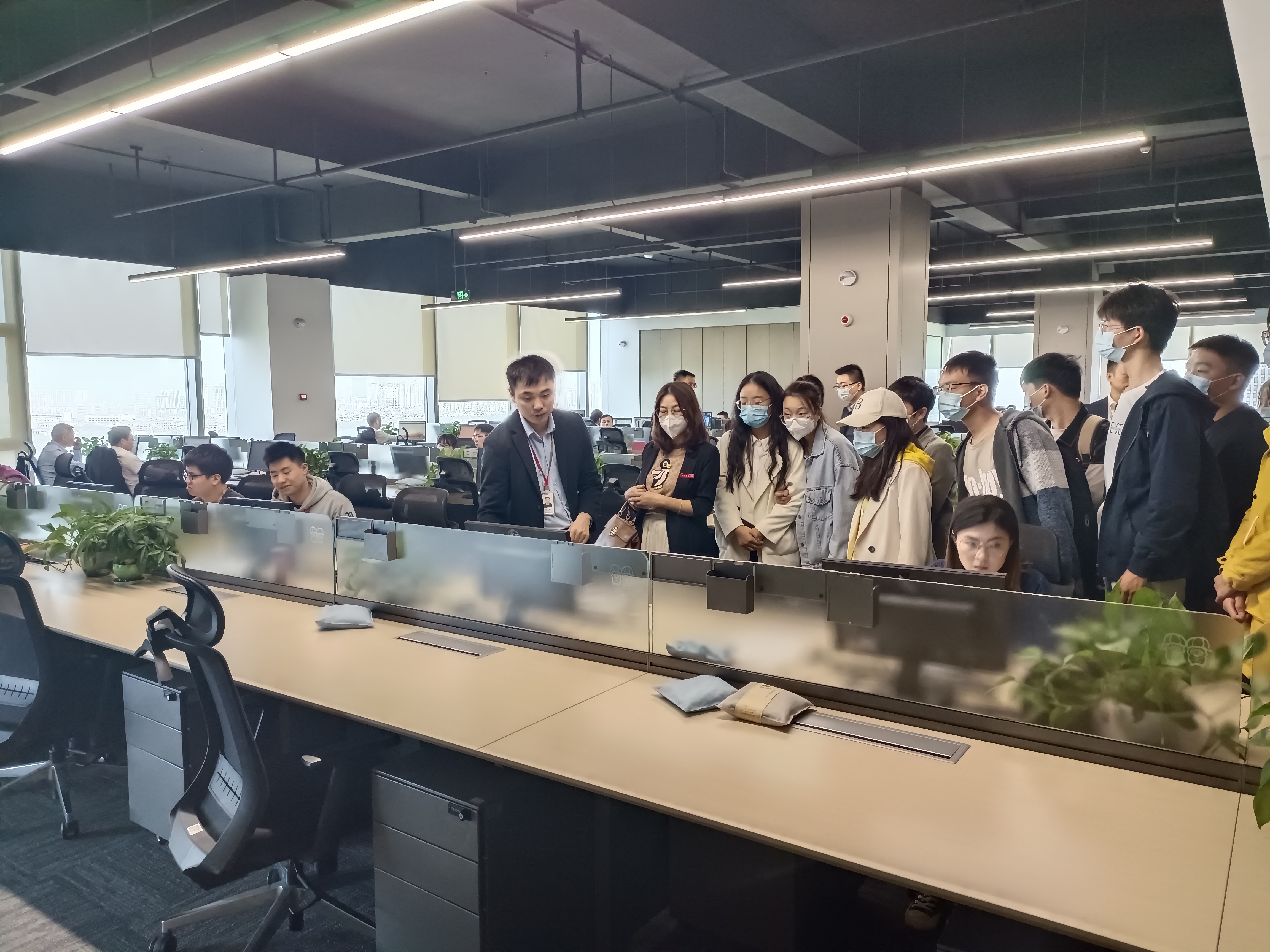 抵达双胞胎集团后,学院师生参观了双胞胎集团总部,了解双胞胎集团的办公生活环境、数字化集成供应链共享平台、标准化工厂建设、现代化规模养猪场景。其后,在交流座谈会上,与会双方围绕企业人才政策、招聘需求、集成供应链、饲料与服务产品线以及养猪产品线岗位设置开展了热烈的交流讨论;双胞胎集团在岗的江农员工代表温祥贵、刘旺、赵为庭结合自身在双胞胎集团工作的成长与收获给有意加入双胞胎集团发展的学弟学妹们答疑解惑。