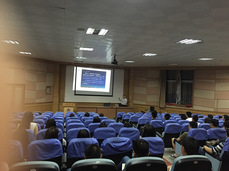 在讲座中,徐凯经理围绕当前国家社会发展面临机遇与挑战、企业人才选聘要求、房地产行业发展新动态、老员工择业时注意细节等方面入手,结合自身大学期间的成才经历、工作后的成长过程,他认为当前老员工有五条职业发展路径,但是每个人都需要学会“用管理学方法来择业”,只有这样才能不迷茫、不徘徊、不人云亦云。他为老员工职业规划提出建议:一是要自我分析,二是要建立目标,三是要做好计划,四是要树立信心。