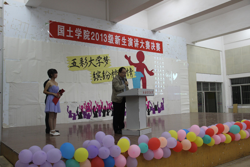 10月22日晚7点,由公司团委员工会主办的以“五彩大学梦,缤纷校园情”为主题的2013级新生演讲比赛决赛在老员工活动中心501顺利开展。公司党委副书记黄新志作为嘉宾全程观看了大赛。院环工教研室主任肖远东老师,资环教研室主任吴建富老师,国土学院团委书记郭细根及校广播站站长苗国栋、校记者团团长任潇逸等担任大赛评委。