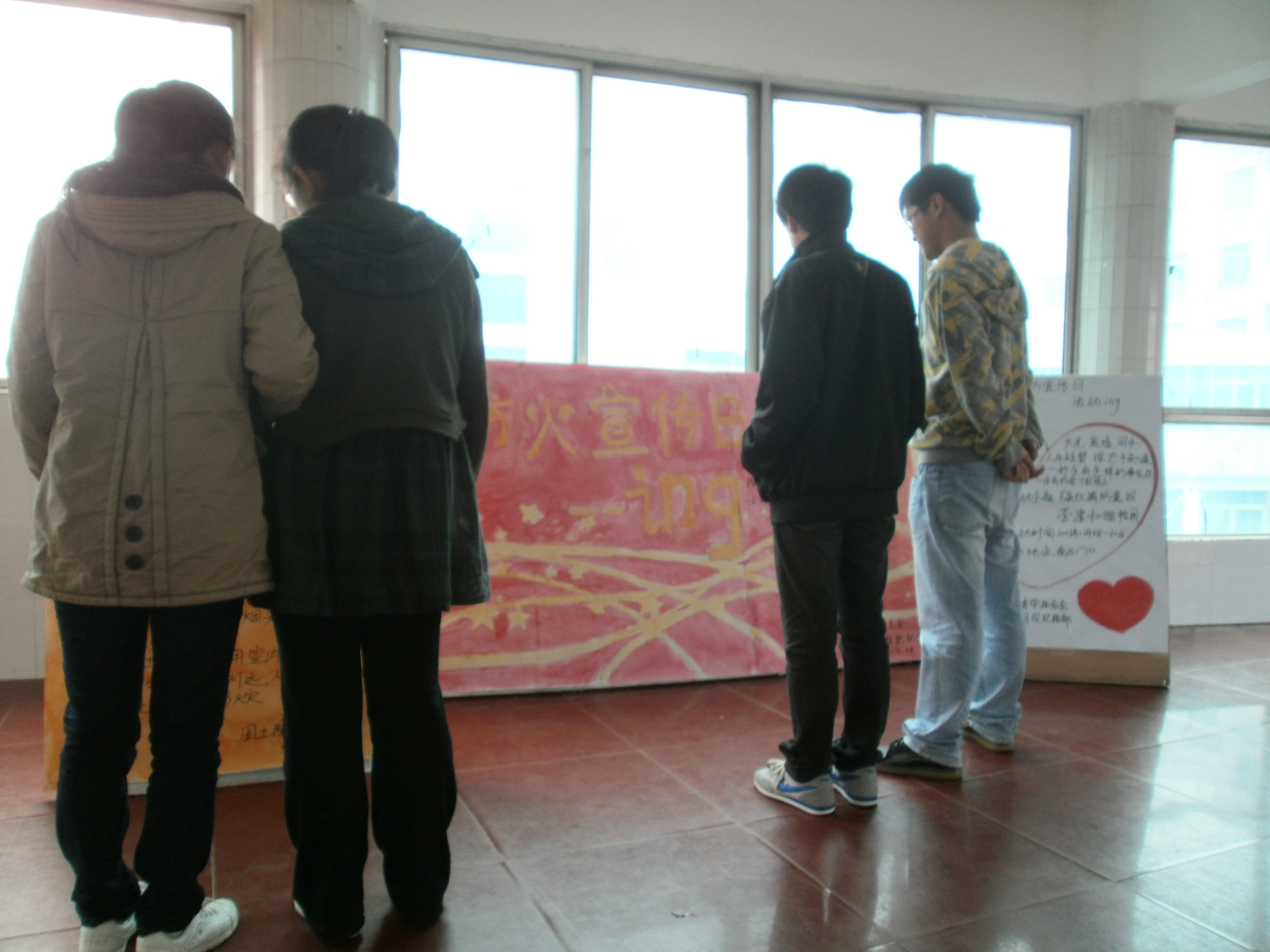 公司员工在活动海报前认真观看