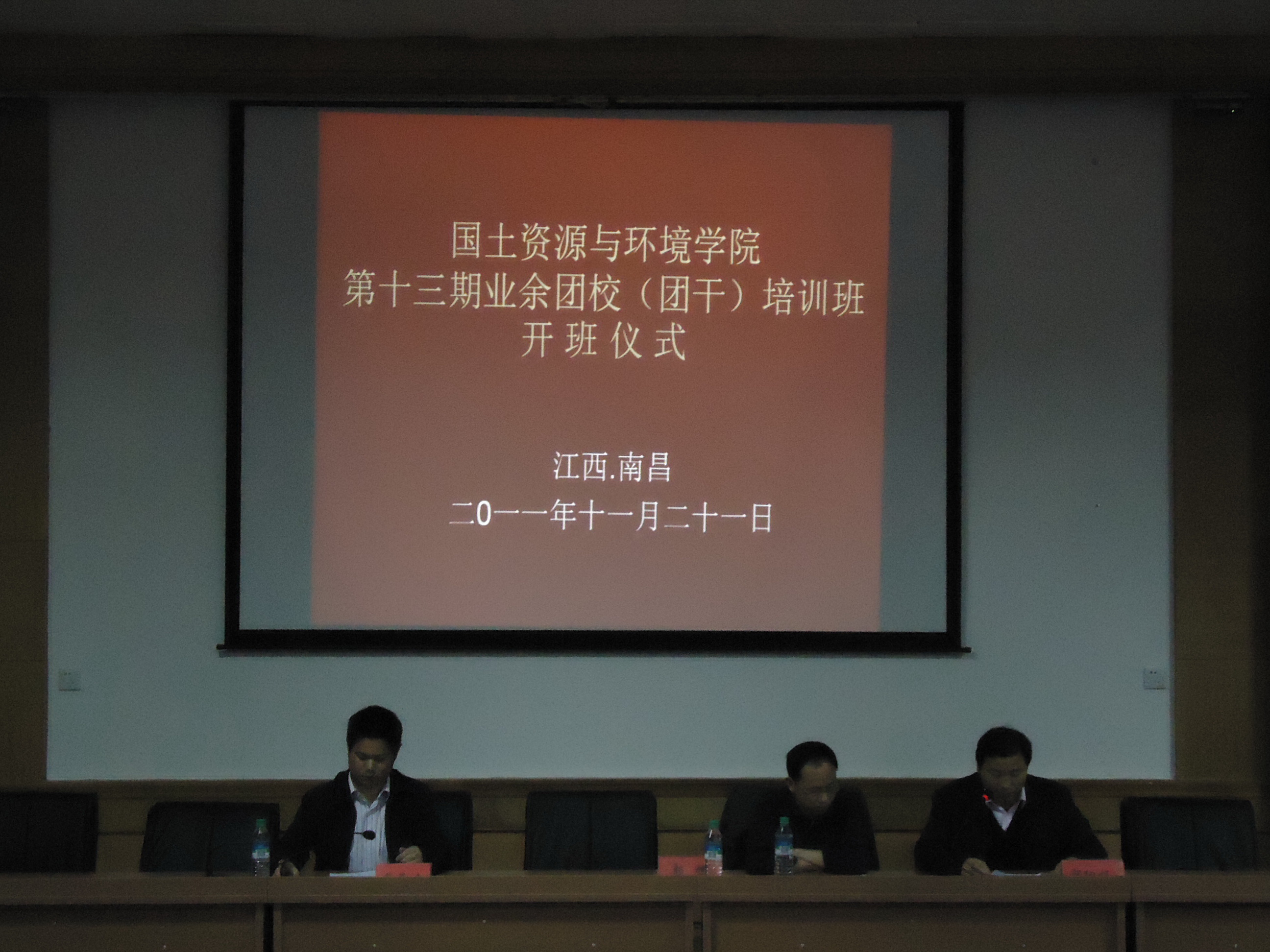 莅临开班仪式的嘉宾有公司党委书记郭旭教授,党委副书记蔡海生教授,团委书记郭细根老师。参加本次团干培训的员工包括公司团委员工会副部长(已参加第十二期团干培训班的同学除外)及干事,社团主要干部,2011级各班班委,以及其他各班新当选的班长、团支书。本期开班仪式由郭细根老师主持。