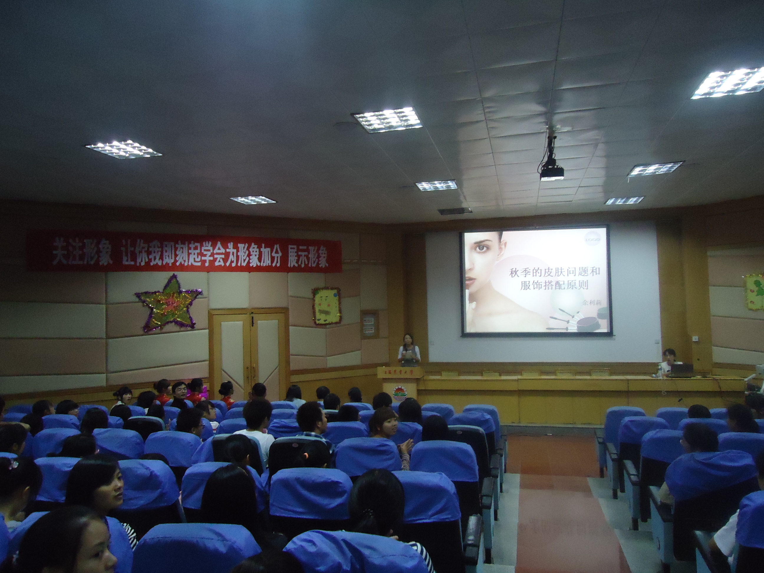 讲座上,余莉莉老师为我们讲解了日常如何保养自己的皮肤、头发以及该如何穿着打扮等和同学们息息相关的生活问题。同学们也积极参与其中,虚心向老师提出问题。最后,同学们展望未来向许愿箱里放入了写了自已期望一年后的形象,此次知识讲座也在掌声中圆满落幕。