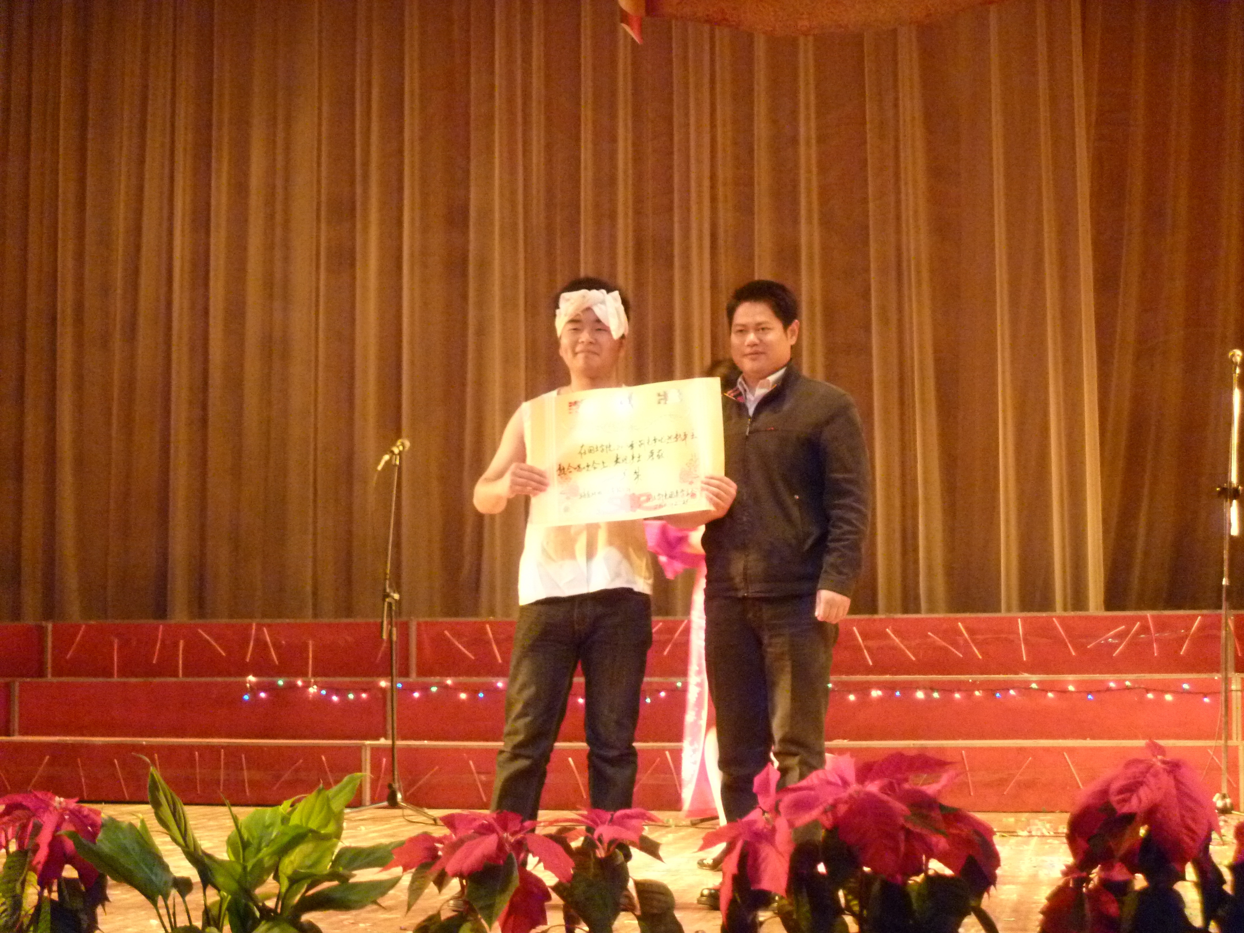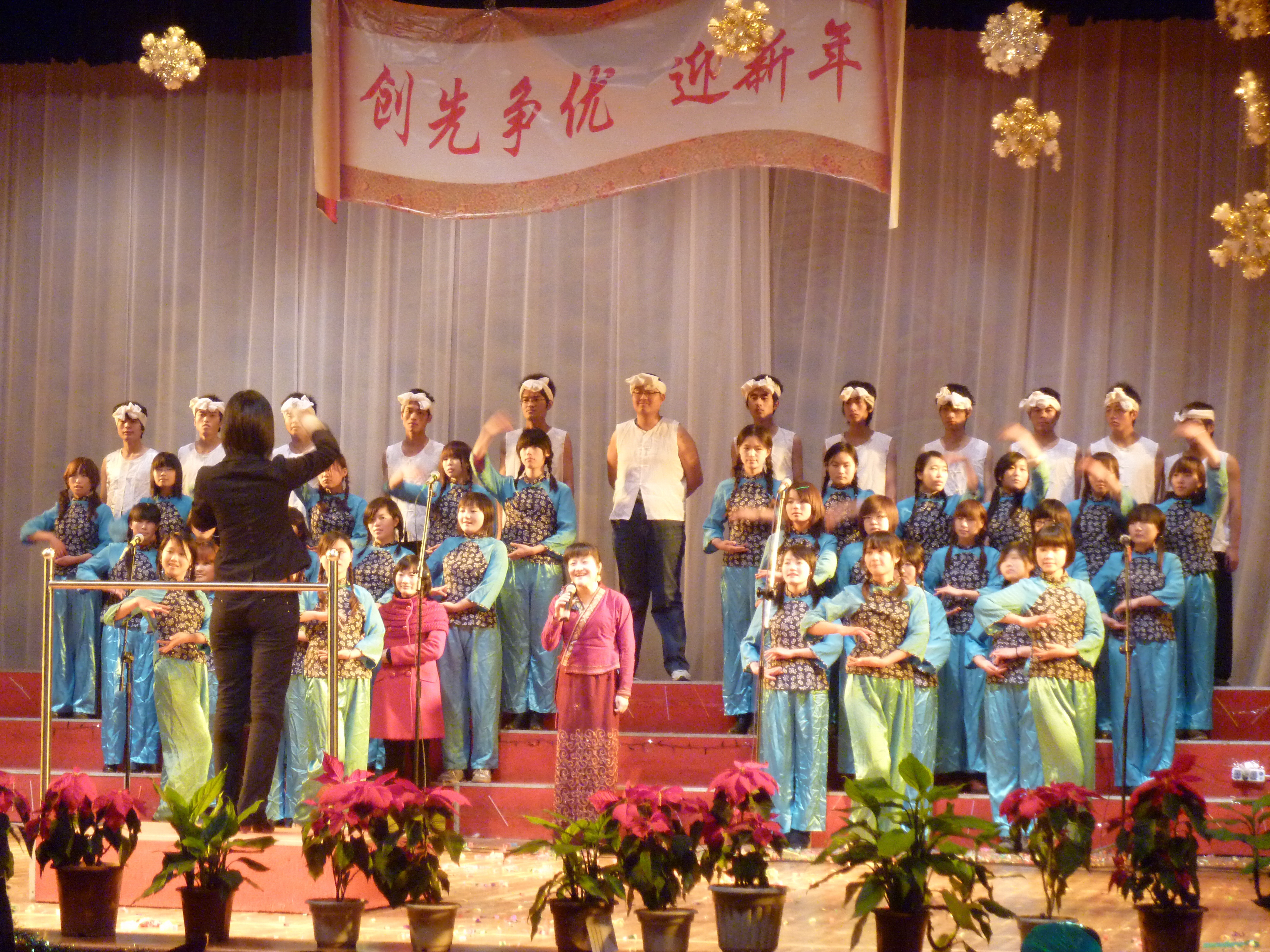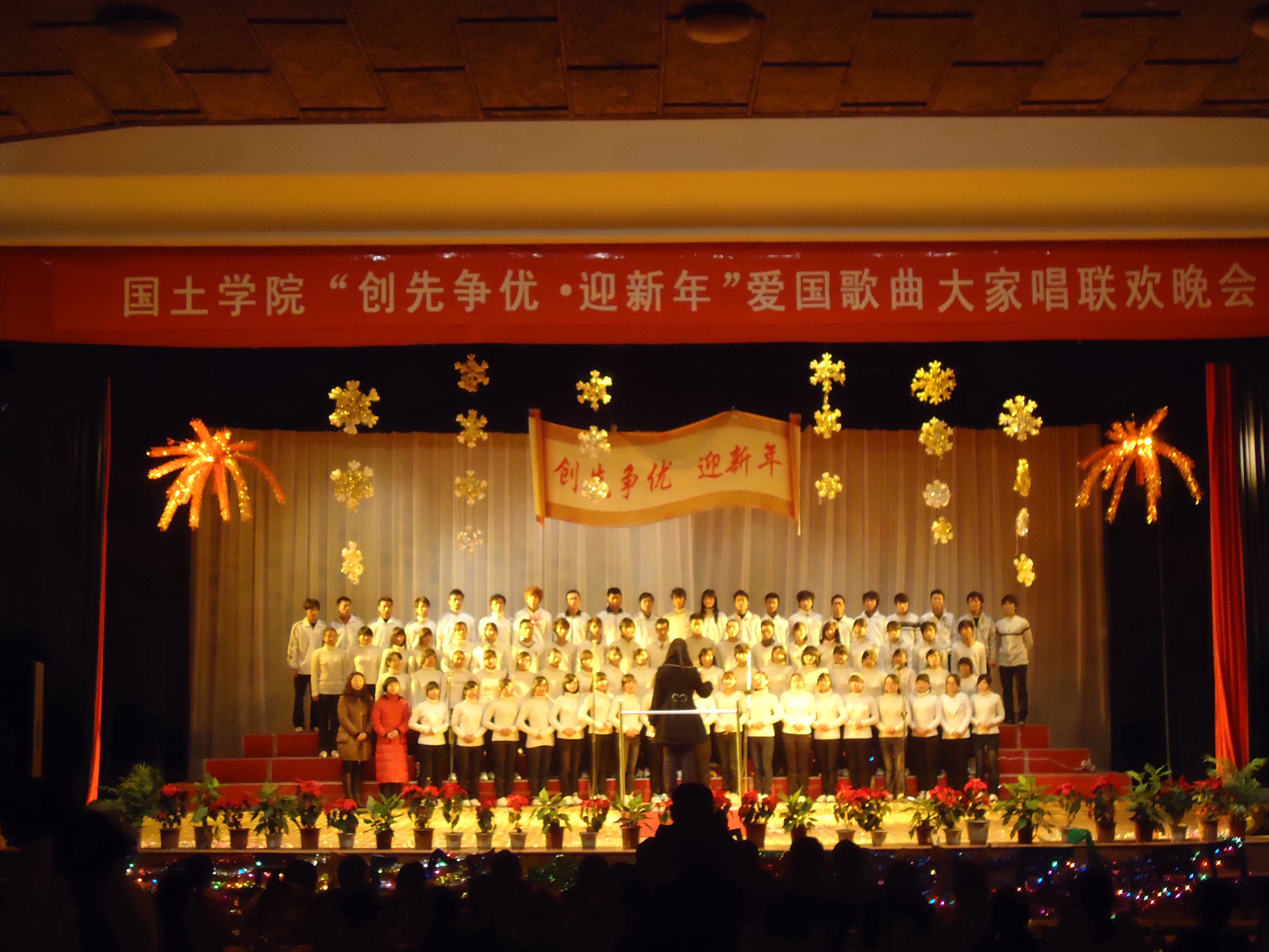 12月25日晚7点,由国土院文艺部主办的以“创先争优,迎新年”为主题的班班唱比赛在校大礼堂顺利举行。本次比赛邀请到动科院团委书记罗志华,校员工工作处员工管理科科长彭剑锋、园林院团委书记李向楠、人文院团委书记陈小志以及公司党委宣传部校报编辑余刚老师担任评委。另有国土公司党委副书记蔡海生教授、研究生处办公室蓝猷平老师,公司领导和老师以及各班班主任,各兄弟院系员工会主席和各院文艺部部长参加了晚会。