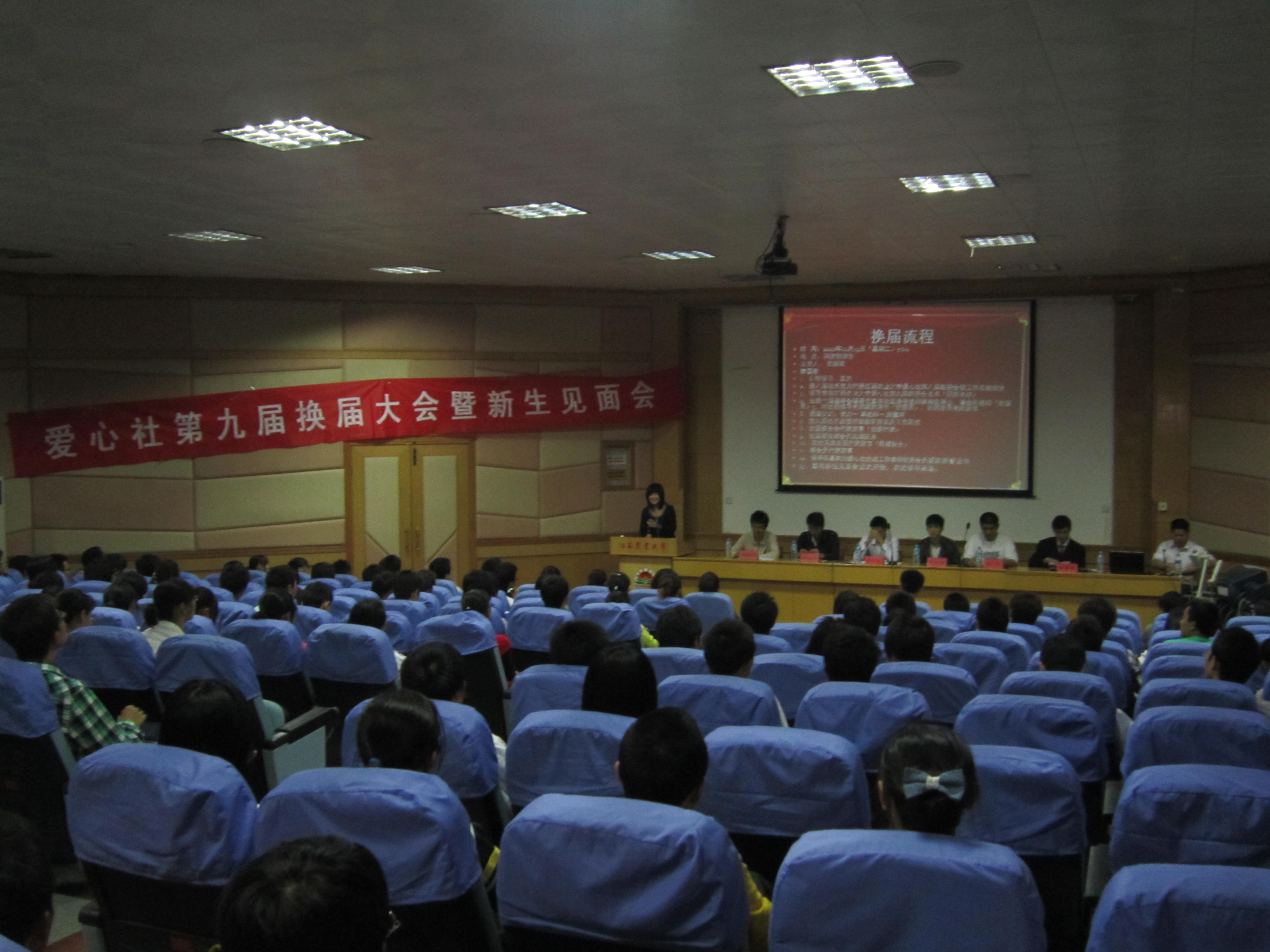 10月19日晚,公司明星社团爱心社在科技馆报告厅召开了第九届换届大会,并取得了圆满成功。出席本次大会的有公司党委副书记蔡海生,学工办谭会乐老师,社联副主席以及兄弟社团负责人。