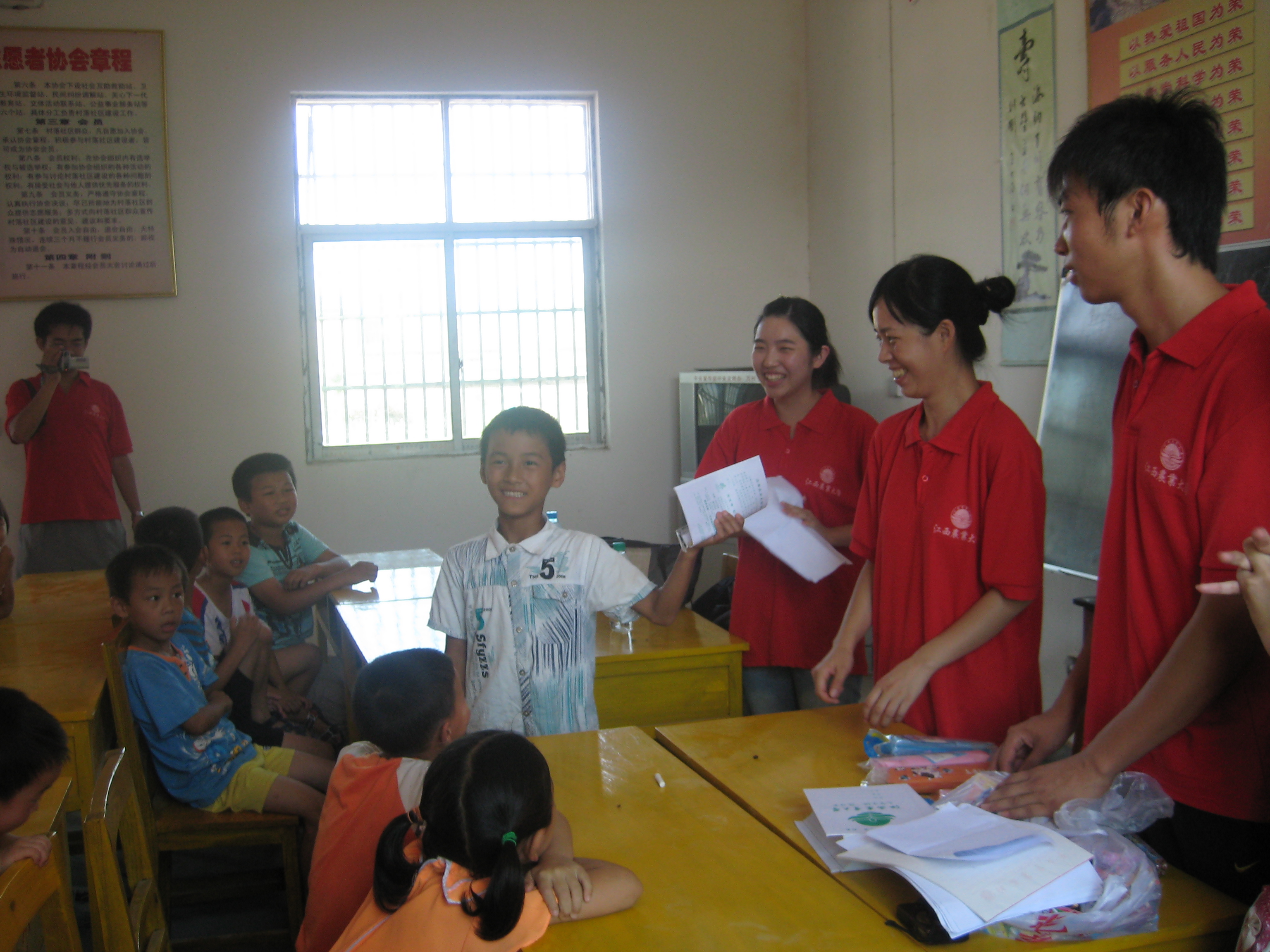 队员与当地小员工联谊,对他们进行爱国主义教育和文化知识辅导