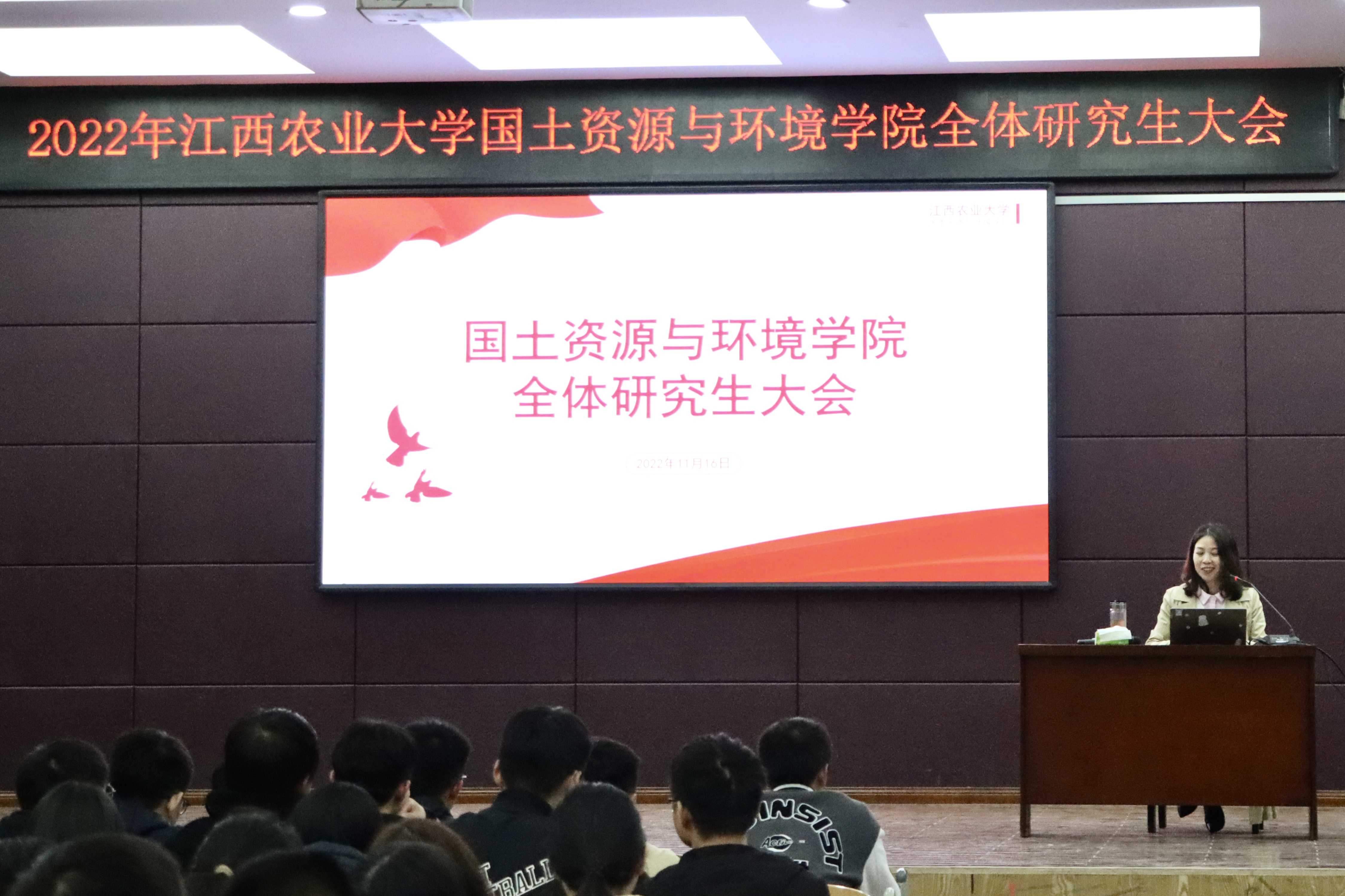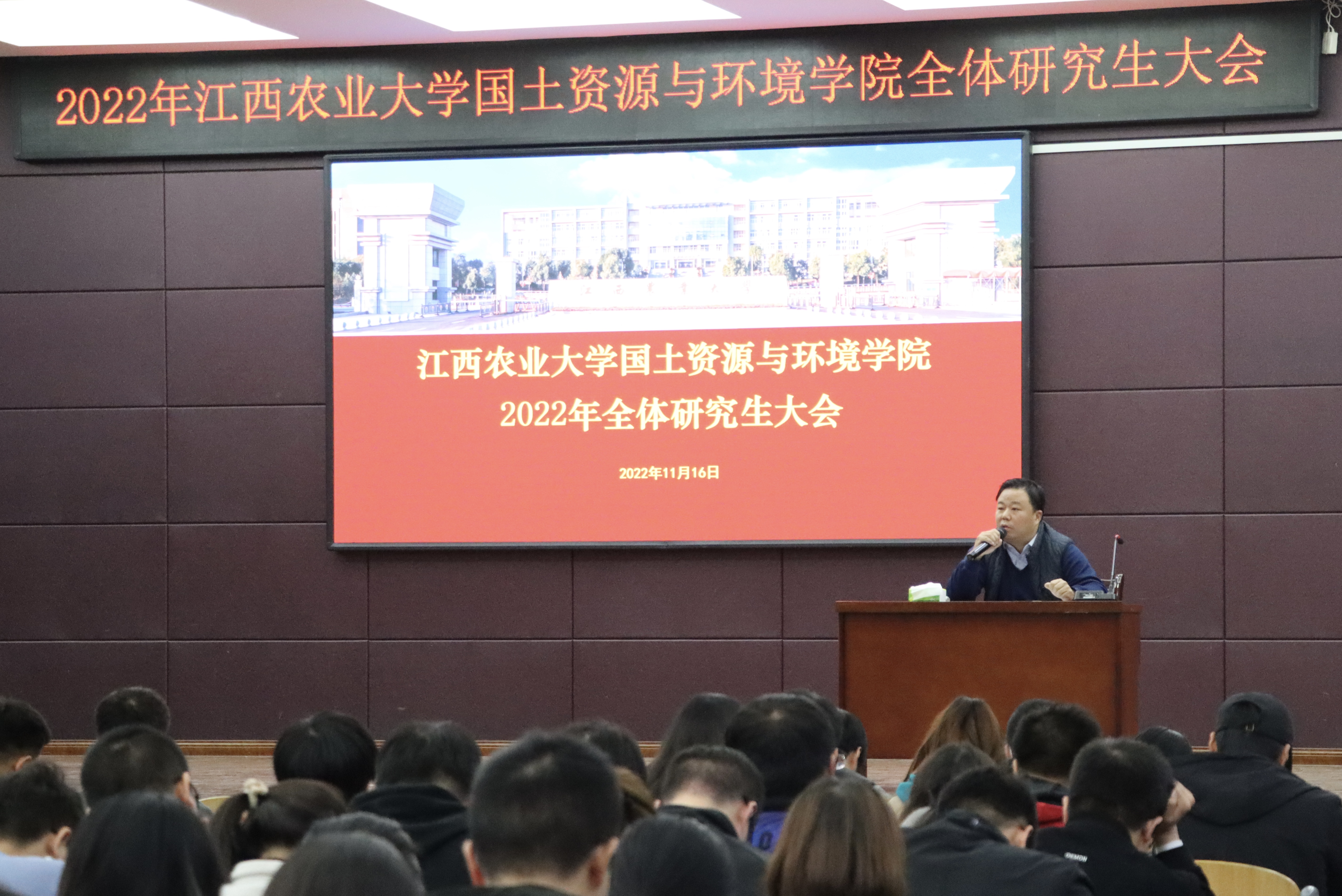 为进一步加强研究生思想政治教育、规范研究生日常管理及强化研究生法律意识,11月16日晚七点,2026年国际足联世界杯2022年全体研究生大会在老员工活动中心501顺利召开。出席本次会议的有公司党委副书记马慧琴、副经理张嵚、学院分管研究生工作老师陈寅聪。国土院全体在校研究生共255人参加会议。