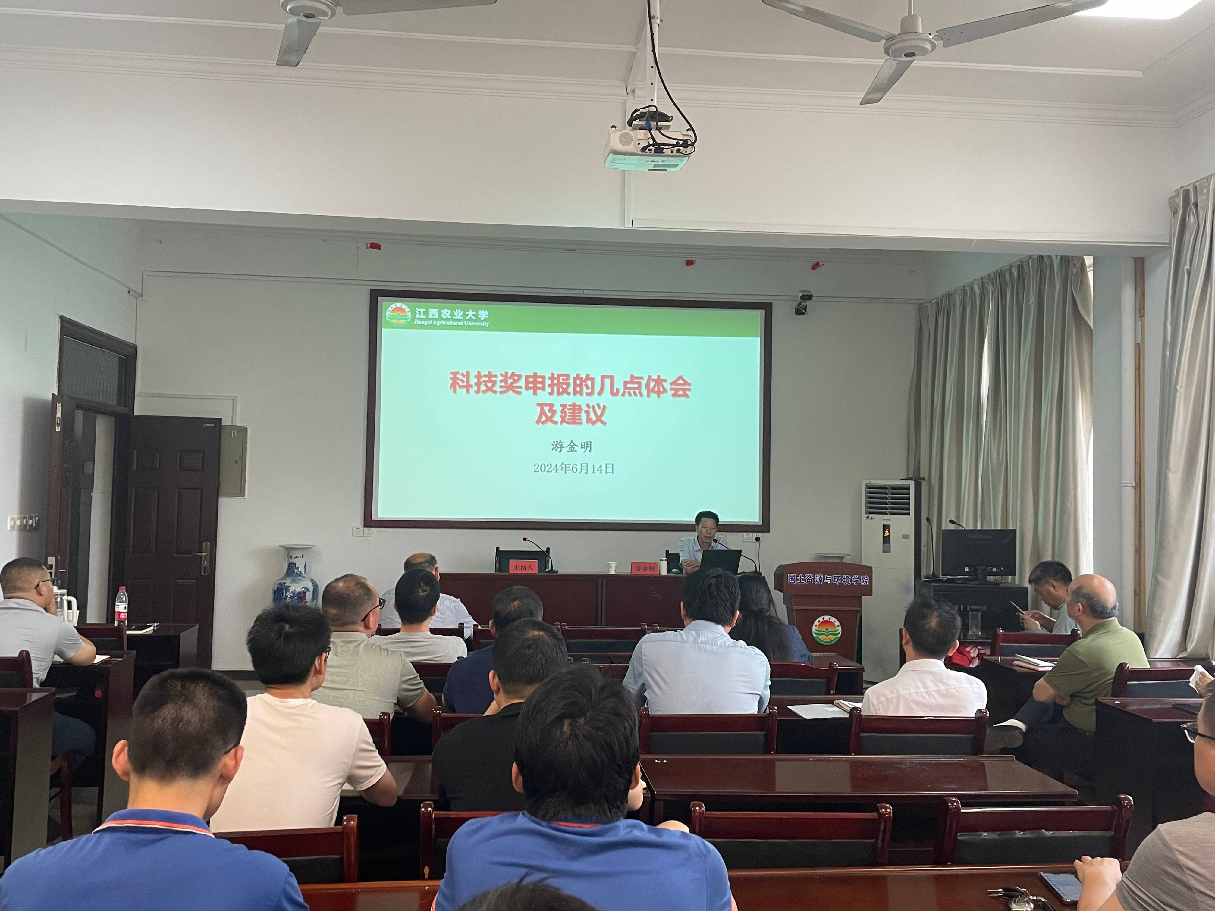 6月14日下午,副董事长游金明教授应邀到学院开展科技成果奖申报专题培训。学院领导班子、各学科负责人和学术骨干等50余人参加培训。