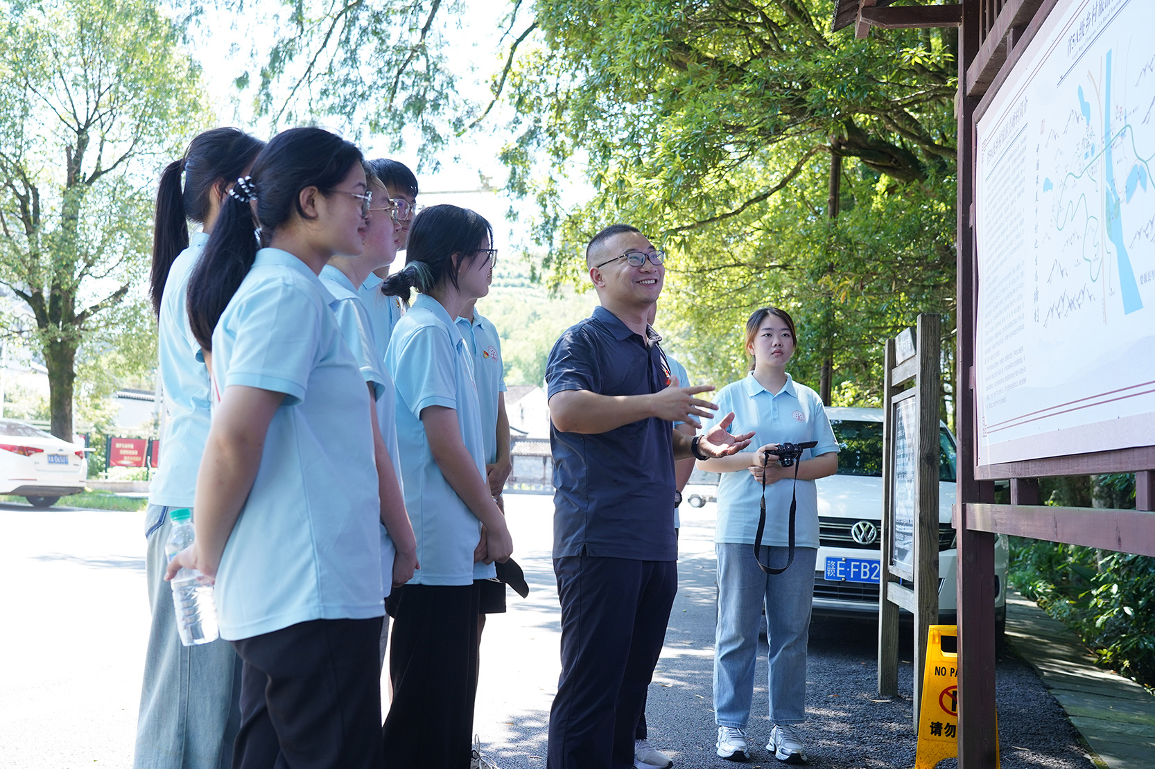 其间,婺源籍老员工还热情地向实践队成员介绍了当地保护名木古树的独特方法。