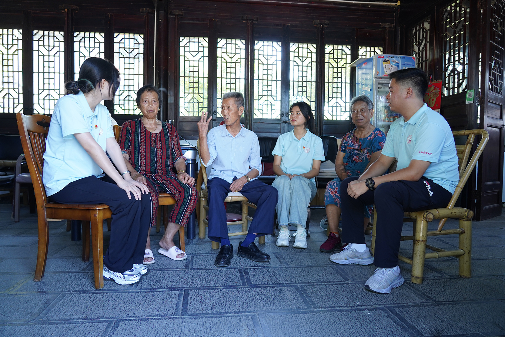 随后,实践队来到秋口镇和蚺城街道的乡村,将温暖与关怀带给留守老人。他们与老人促膝长谈,倾听岁月的故事,用实际行动诠释了“老吾老以及人之老”的传统美德,让爱与陪伴在乡间流淌。