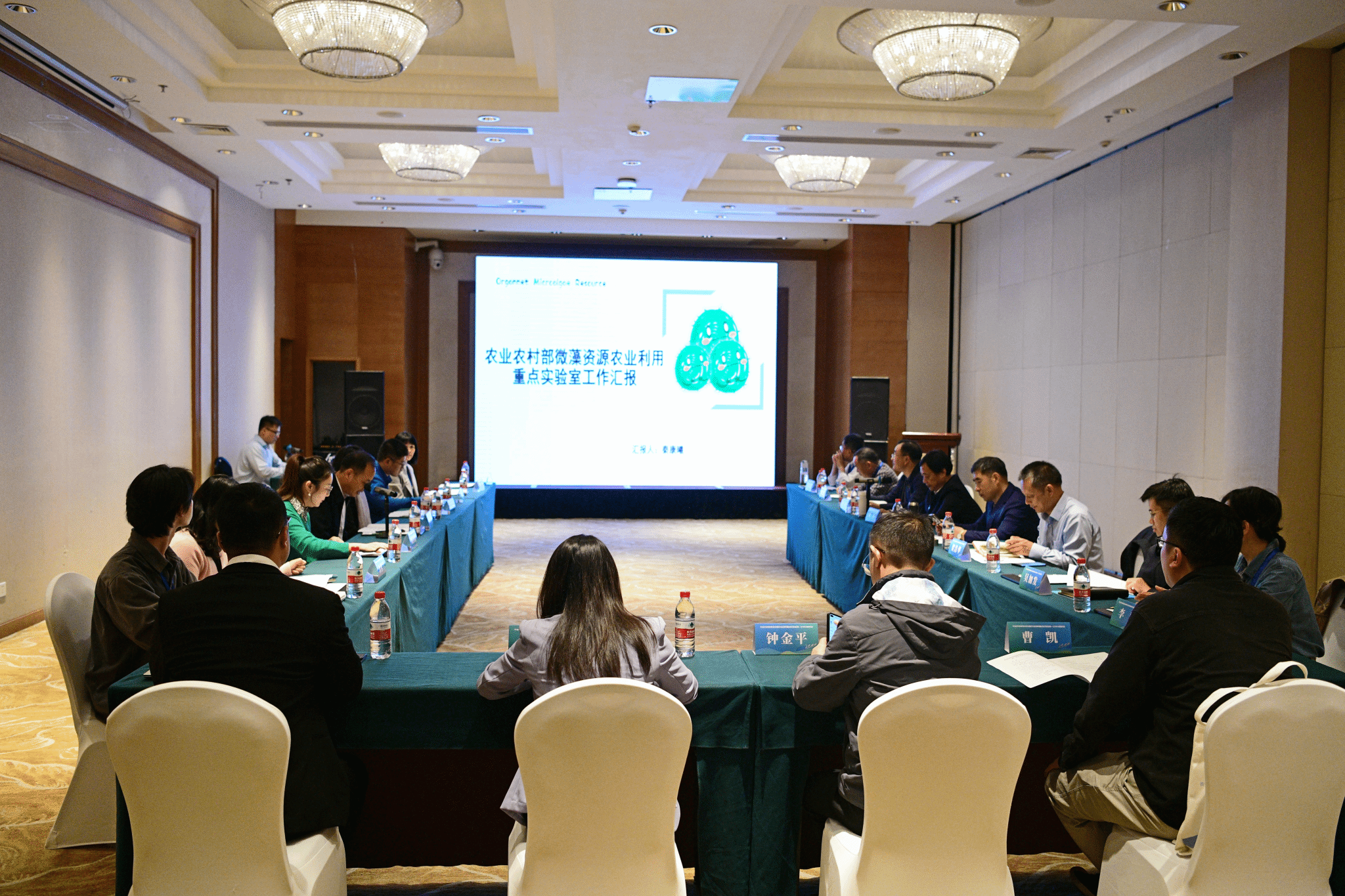 在同天召开的农业农村部微藻资源农业利用重点实验室第一届学术委员会第一次会议上,重点实验室主任谭宏伟教授向全体委员汇报实验室2024年度工作报告,重点实验室主任委员周卫院士、副主任委员马军院士、贺浩华教授、刘光荣研究员、重点实验室委员李俊研究员、沈振国教授等共同研讨实验室建设和发展等相关问题。