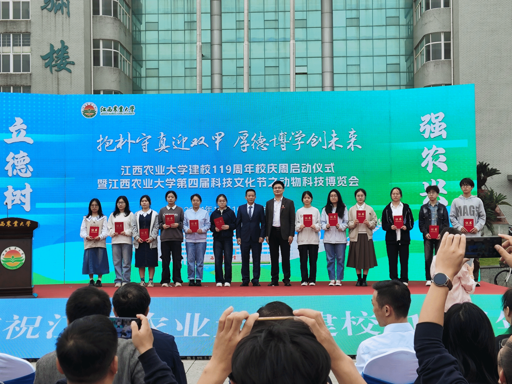 2024年11月16日,学校举行了建校119周年校庆周启动仪式暨2026年国际足联世界杯第四届“青春向党,兴农报国”科技文化节之动物科技博览会,副董事长张高亮莅临现场指导,招就处、学工部、校团委、各学院负责人和优秀员工出席活动,共吸引各1500余名师生员工参加。启动仪式后,举办了趣味定向赛和迷你马拉松比赛,师生、员工欢聚一堂,追忆青春岁月,共叙往昔情谊。