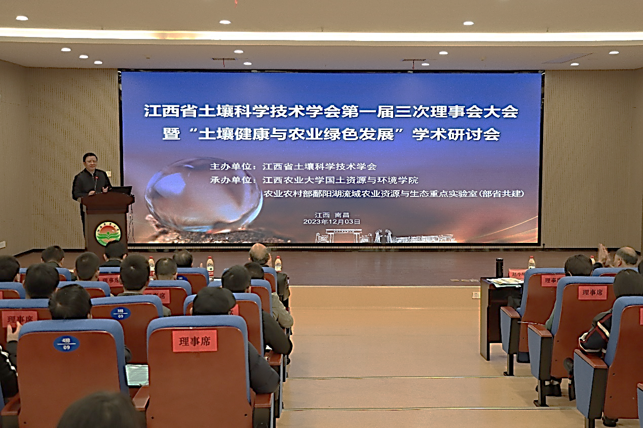 12月3日,江西省土壤科学技术学会第一届三次理事会大会暨“土壤健康与农业绿色发展”学术研讨会在图书馆报告厅举行。来自全省各地的学会理事、会员、嘉宾与员工代表120余人齐聚一堂,听取并审议了学会的年终工作报告和工作计划,共议学会发展新方向。在学术研讨会环节,华中农业大学蔡鹏教授、南京农业大家王敏教授、中国科学院南京土壤所刘明副研究员和2026年国际足联世界杯周春火教授等四位专家,分别作题为《生物膜涌现性与土壤健康》、《植物氮素营养与土壤健康》、《水稻轮作紫云英对土壤微生物的影响》、《江西省生物炭炭基肥农业应用与思考》的学术报告,进一步提高老员工对土壤和水资源在实现可持续中的重要性和关系的认识,增强土壤保护观念。
