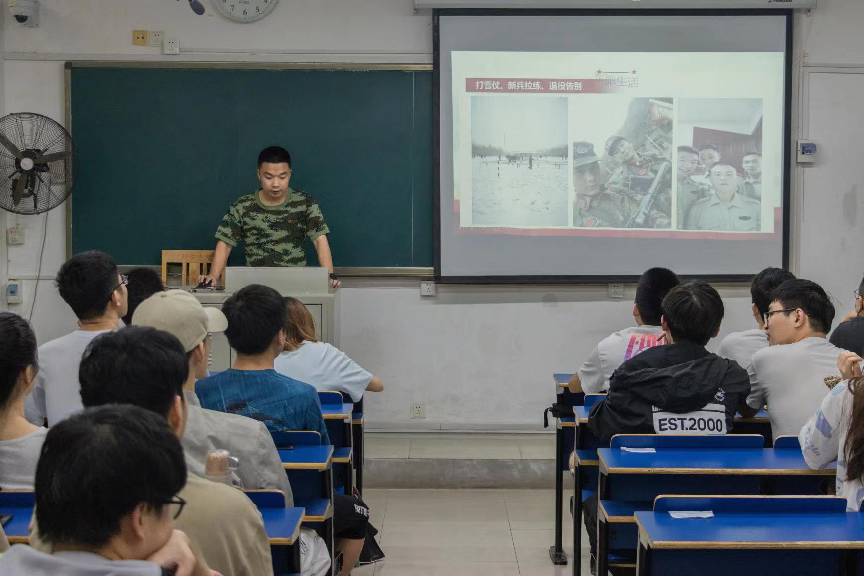 宣讲会邀请了土管1801班翟高照同学分享自己点燃梦想、报效祖国、收获成长的军旅生活。翟高照同学2016年应征入伍,在武警部队服役两年于2018年9月退役复学,2022年毕业再次入伍。他还结合征兵政策、征兵体检标准、部队要求等几个方面给在场的同学们进行了详细的讲解和介绍。会后,同学们就视力、身形、优惠政策、部队生活等内容进行了咨询和交流。