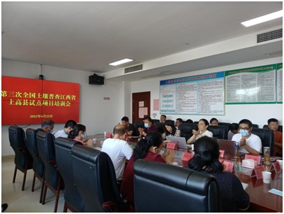 6月23日下午,第三次全国土壤普查江西省上高县试点项目培训会召开,上高县副县长汪晓艳及江西省农业技术推广中心种植业技术推广应用处推广研究员邵华讲话出席会议并讲话,公司张嵚副经理出席会议。随后,公司郭熙教授、卢志红副教授、梁丰副教授作为省级专家分布对三普的工作流程、剖面样品采样技术及规程、表层样品采样技术及规程进行了详细的讲解。上高县各乡镇三普工作负责人员、上高县第三次土壤普查工作专班人员参加培训。