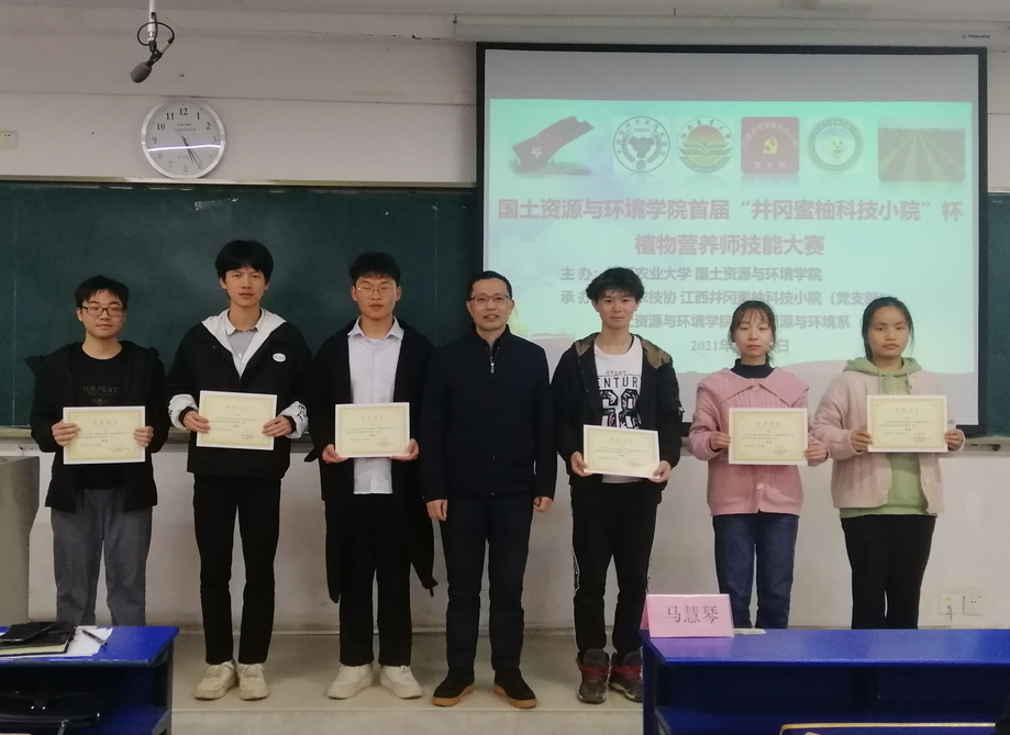 为推进国家一流本科专业建设点农业资源与环境专业的建设,提高本专业老员工理论与实践相结合的能力,增强大员工绿色生态意识和社会责任感。2021年12月10日,国土公司成功举办首届“井冈蜜柚科技小院”杯植物营养师技能大赛。公司党委副书记马慧琴出席并致辞,资环系吴建富教授、魏宗强、谢志坚、赵尊康、杨秀霞、谢凯柳等6位老师担任本次大赛评委。
