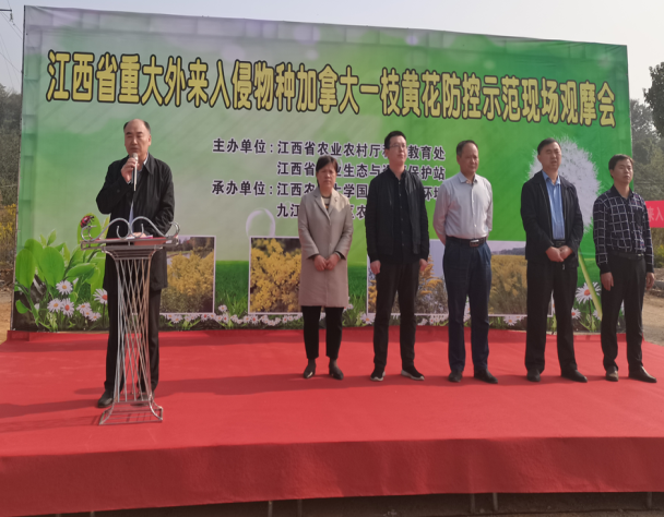 我校外来入侵生物研究团队自2019年以来针对江西省重大危害外来入侵物种开展了一系列的调查、监测与防控研究工作,先后获得了农业农村部和省农业农村厅等部门的多个专项项目资助。已对我省新余、宜春、鹰潭、赣州、南昌和九江市等区域的加拿大一枝黄花、凤眼蓝、空心莲子草、福寿螺和红火蚁等重大危害外来入侵物种的入侵形势进行了全面的调查与监测,并开展了加拿大一枝黄花防控技术研发与示范工作,有效防控入侵生物危害奠定了基础。