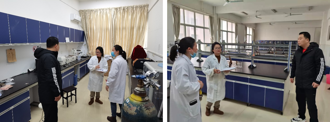 3月10日下午,副经理张嵚同实验室熊江波、汪露老师一同对学院45套实验室进行安全和环境卫生情况检查。检查情况总体良好,各实验室积极配合检查,环境卫生较好,仪器设备摆放整齐,灭火器数量合理且状态良好。实验室尚不存在大的安全隐患,但也存在一些不可忽视的问题,及时向相关负责人通报检查情况,要求相关实验室及时整改,做到立行立改,不留死角。
