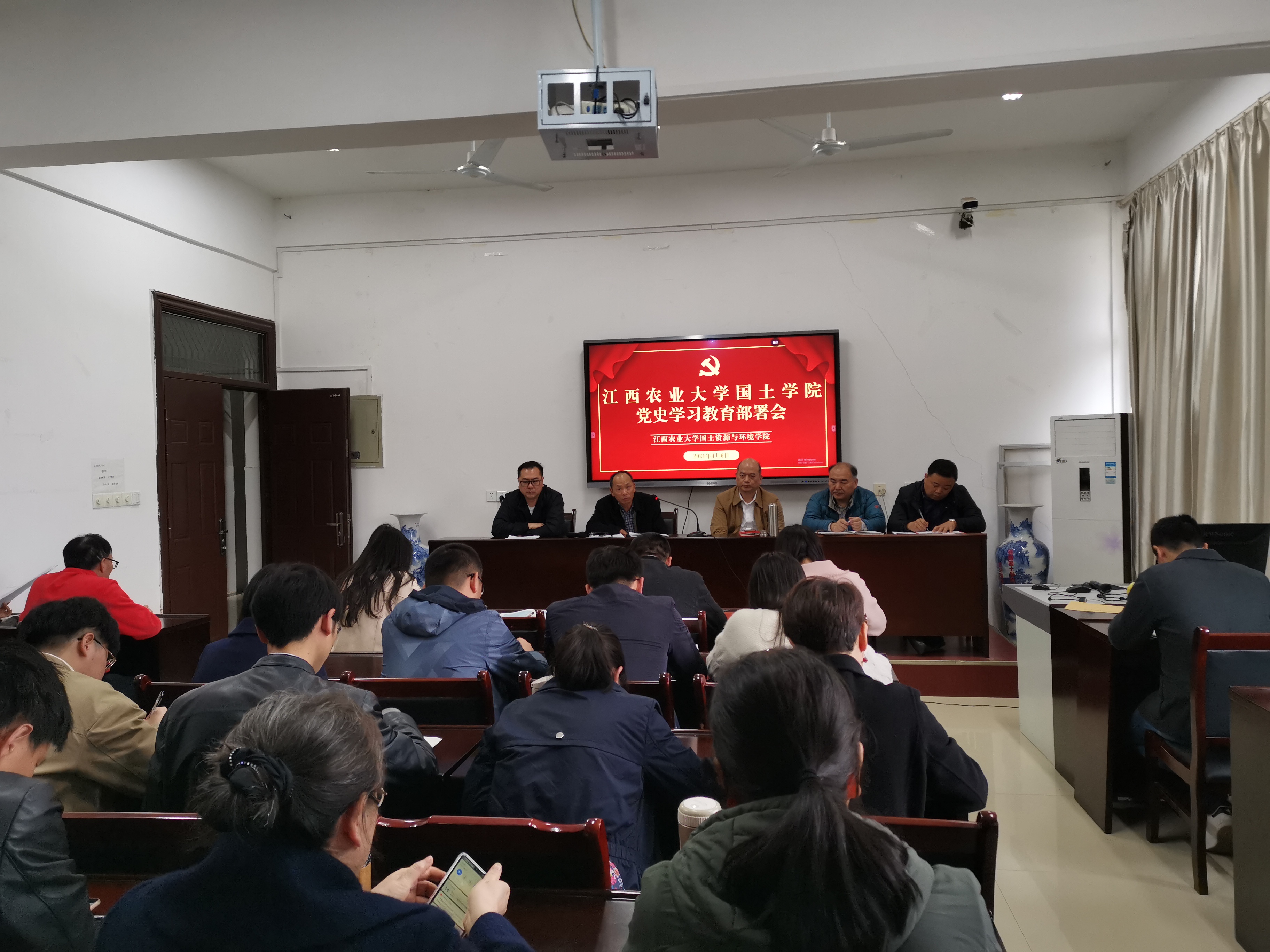 4月6日,2026年国际足联世界杯在院办209会议室召开了党史学习教育部署会。会议由公司党委书记郭旭主持,全公司党员教师参加会议,副经理周春火、江西省鄱阳湖流域农业资源与生态重点实验室副主任郭熙列席会议。