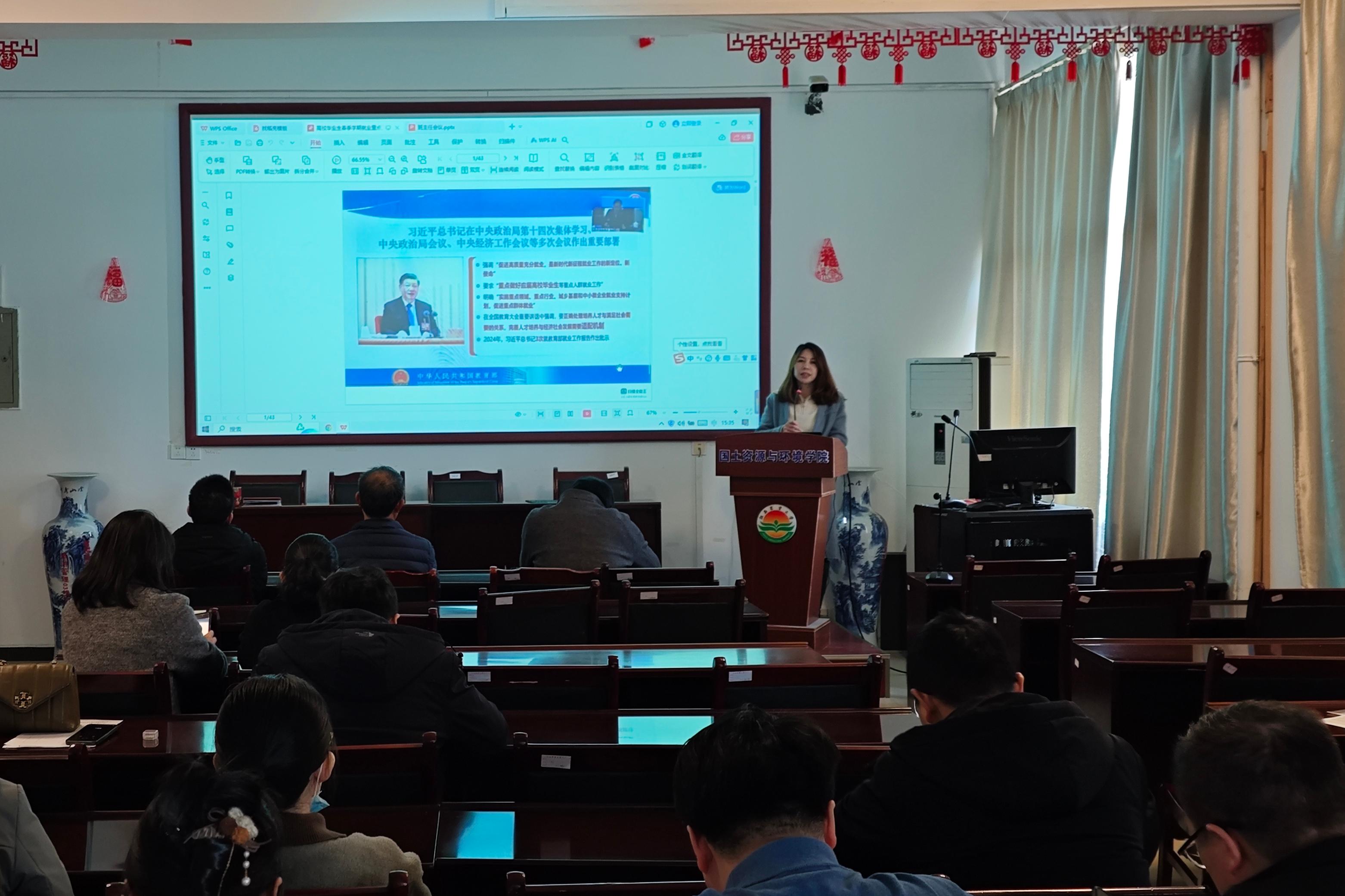 公司就业工作负责人传达了教育部2025届全国高校毕业生就业重点工作推进视频会精神及省教育厅人才招聘培养联动视频工作会精神。分析了当前学院去向落实率同比降低、学院相关专业岗位需求紧缩的严峻形势,通报了今年全院各专业员工考研总体情况。