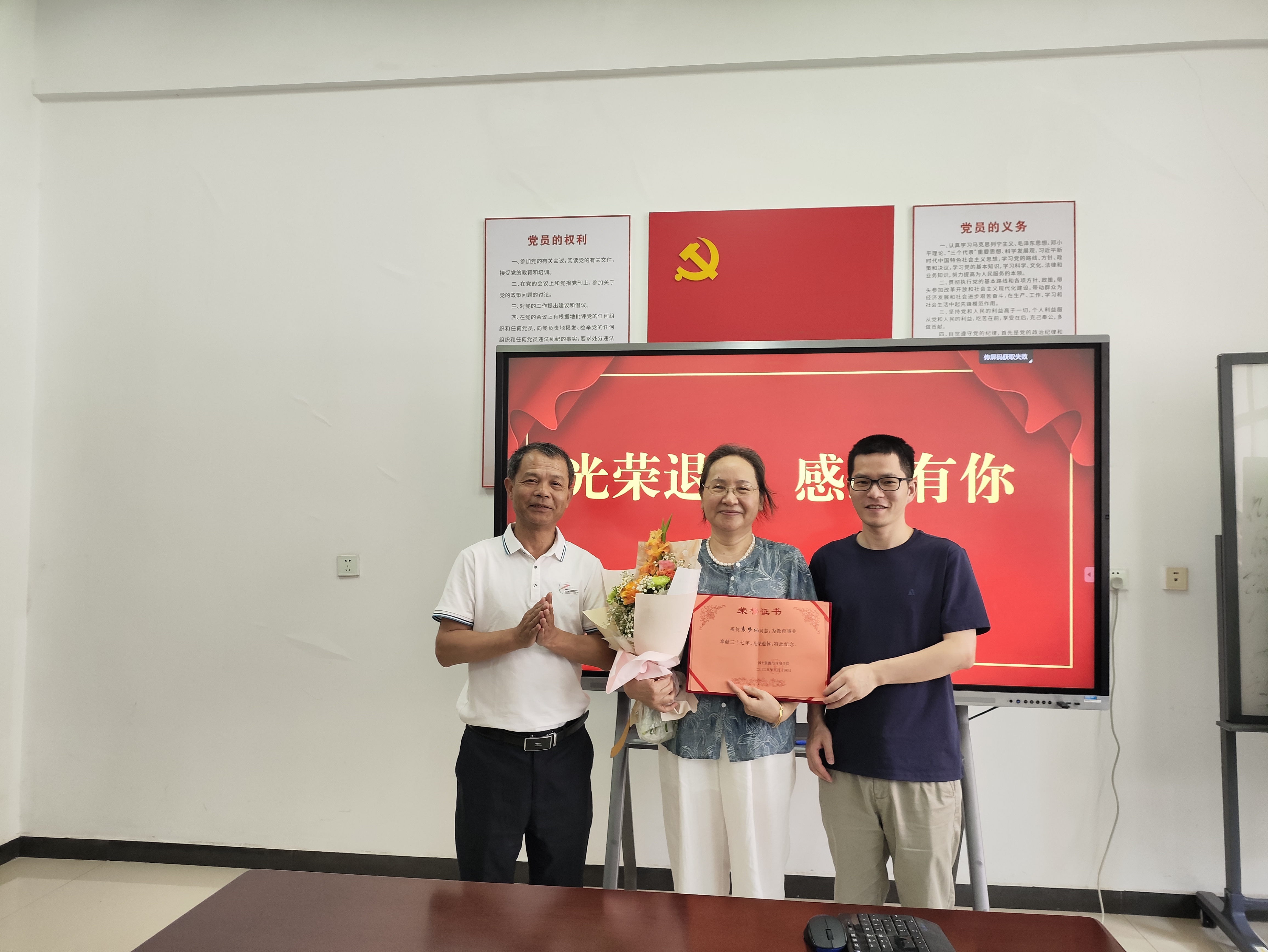 5月14日上午,环境系袁梦仙老师荣休仪式在学院举行。学院领导及环境系系全体教师齐聚一堂,以座谈交流、谈心互勉、献花合影等温情环节,致敬其数十载育人坚守。