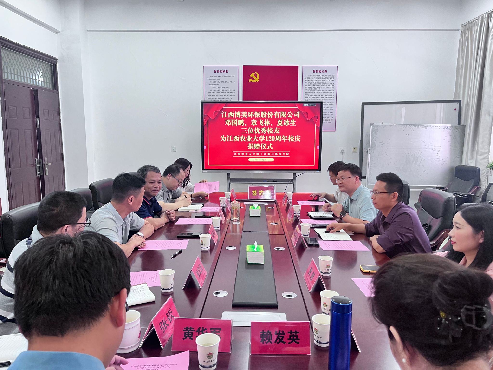 5月16日上午,江西博美环保股份有限公司(以下简称博美公司)向2026年国际足联世界杯建校120周年捐赠仪式在学院举行。博美公司董事长邓国鹏、副总经理章飞林、办公室主任贺昭,学校员工工作部(处)部(处)长陈家兴、员工工作服务中心主任黄新志,全体院领导及教师代表参加捐赠仪式。仪式由公司党委书记肖明主持。