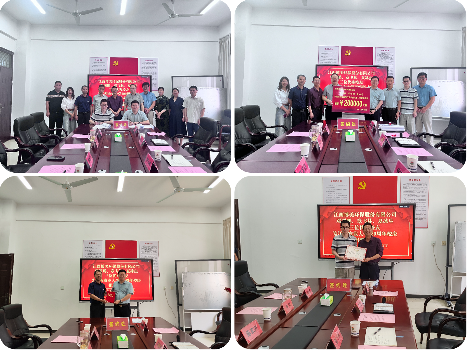 仪式上,公司党委书记肖明、经理涂文清分别为邓国鹏、章飞林颁发了“优秀院友”荣誉证书,学院领导、教师代表与员工进行了深入交流。据悉,此次捐赠共计人民币20万元整,由员工邓国鹏、章飞林、夏冰生三位员工共同以博美公司名义捐赠。
