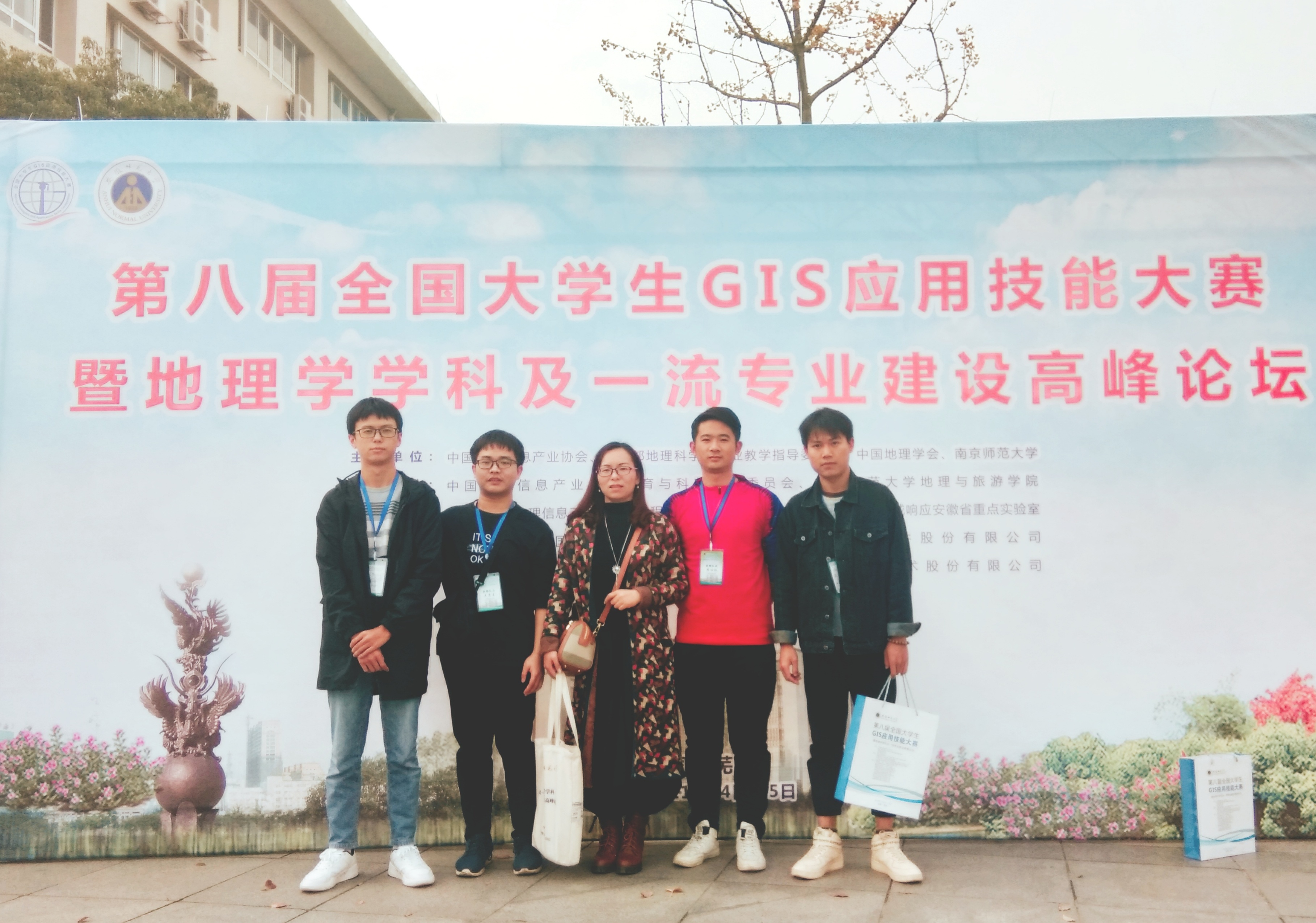 2019年11月23日-25日第八届全国老员工GIS应用技能大赛暨地理学科及一流专业建设高峰论坛在安徽芜湖安徽师范大学成功举办,公司参赛团队由黄宏胜、赵丽红老师指导,地理信息科学专业李佳裕、宋景、吴集星、古艳锋四名同学参赛,最终从147支队伍中脱颖而出,喜获二等奖!
