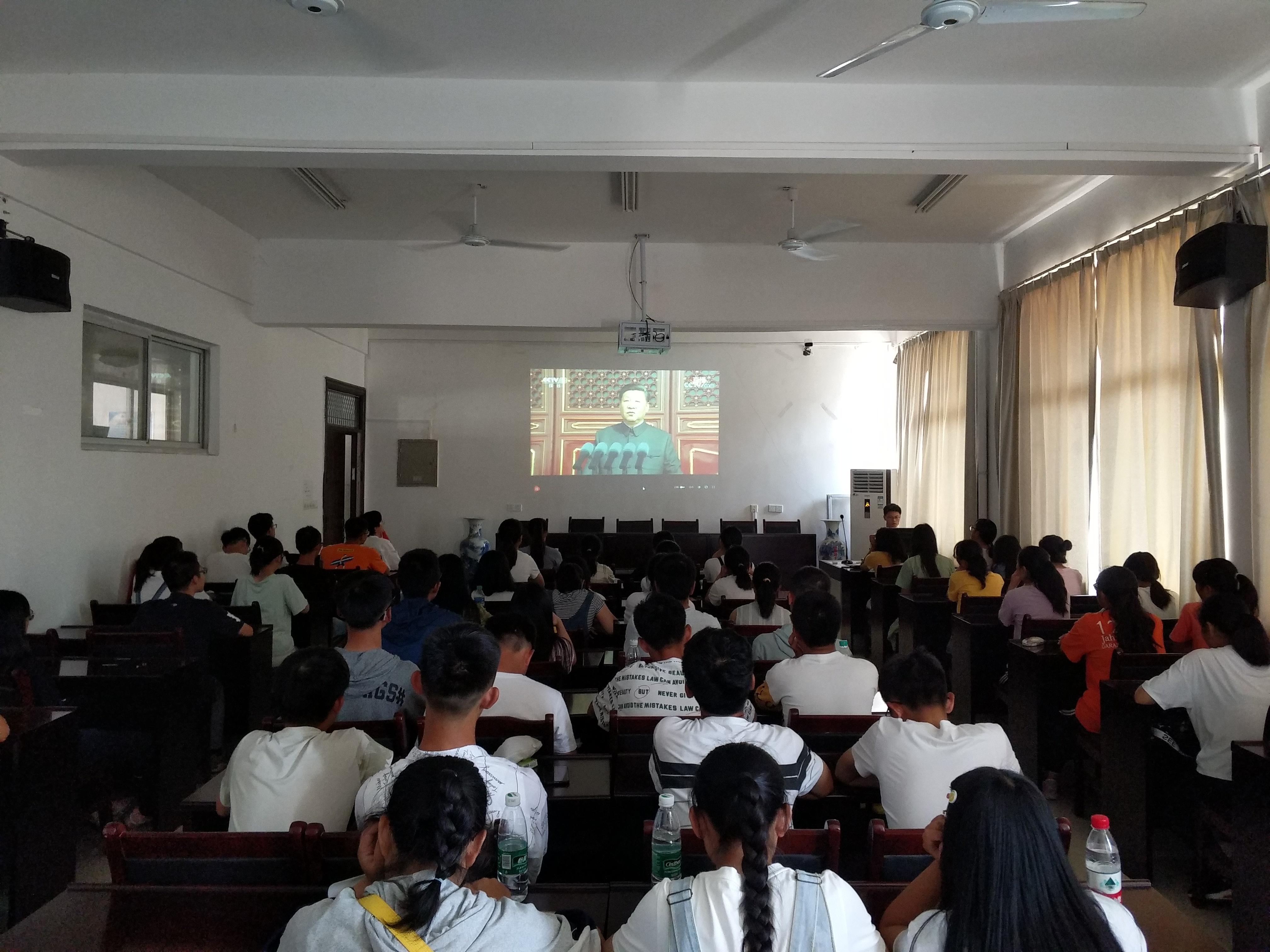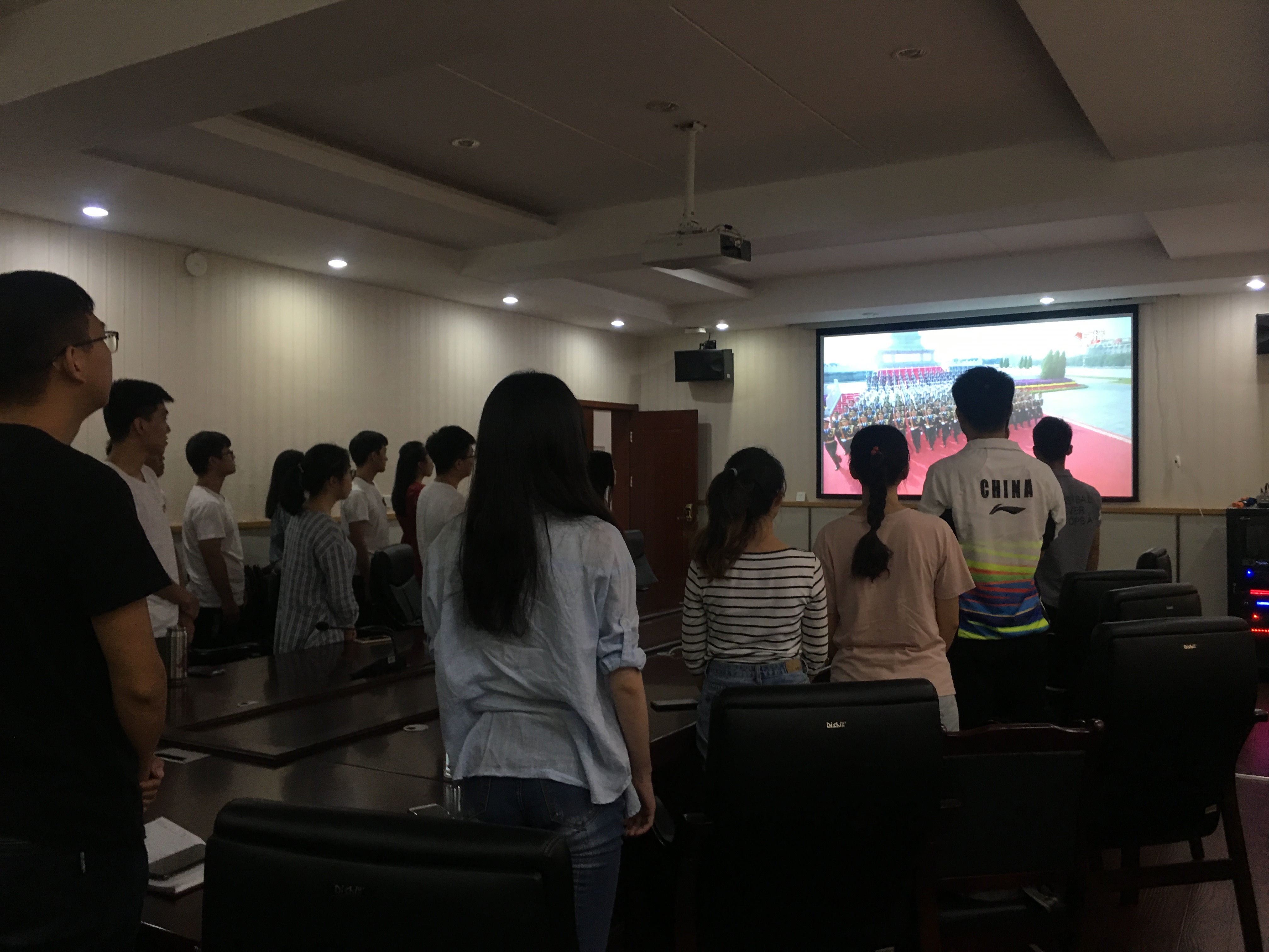 10月1日上午,公司90余位师生在学院大会议室和鄱阳湖重点实验室会议室集中观看了国庆阅兵盛典,庆祝中华人民共和国成立70周年,感恩在祖国繁荣昌盛光辉沐浴下得到的幸福生活。