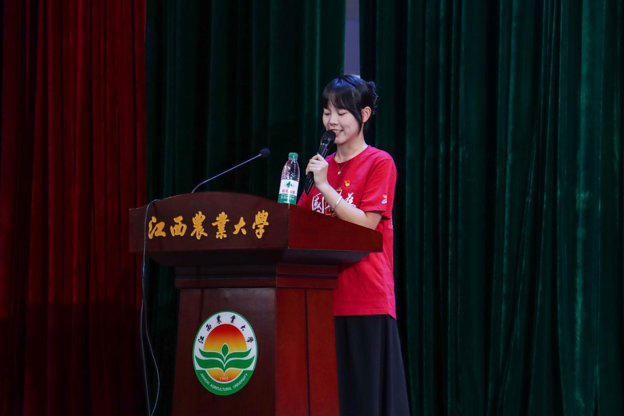 两次国家奖学金获得者、2022级土地资源管理专业的邹郅瑶同学作为老生代表发言。她带着学姐的亲切与沉稳,结合自己两次斩获国奖的奋斗历程,娓娓道来大学学习的高效方法、平衡学业与生活的秘诀,以及成长路上的迷茫与突破。“大学不是安逸的港湾,而是逐梦的赛场”,她的分享字句真挚,让新生们清晰地意识到:优秀并非遥不可及,而是源于日复一日的坚持与探索。