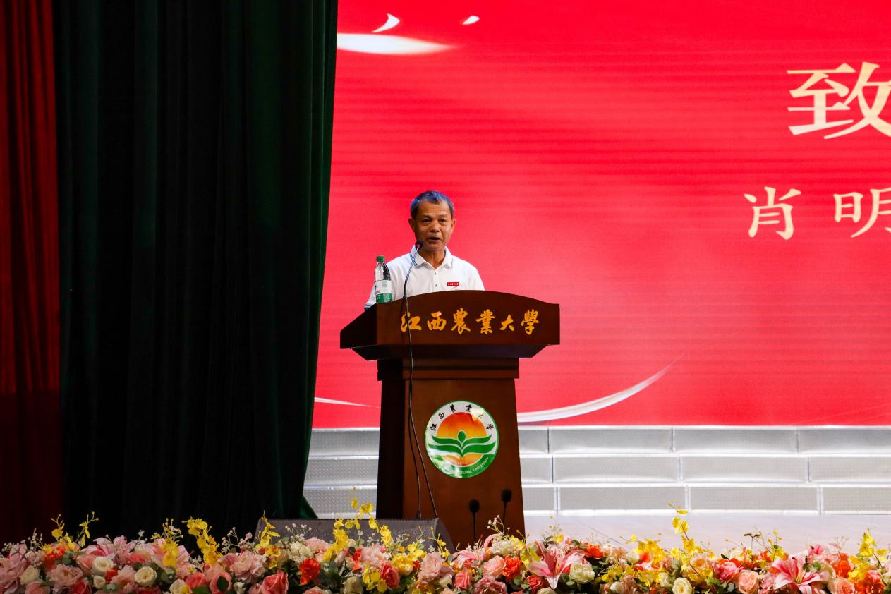 伴随着雄壮激昂的《义勇军进行曲》,典礼正式拉开帷幕。肖明书记以“七要”为核心,向新生们送上了语重心长的寄语,每一句都满含殷切期许:“要有滚烫的家国情怀,做心怀‘国之大者’、担当时代使命的追梦者;要锤炼坚韧的抗压韧性,做直面风雨、不畏挑战的担当者;要锚定身份的全新转变,做主动探索、求知若渴的探索者;要涵养高尚的品德修为,做明德修身、表里如一的践行者;要投身鲜活的实践锻炼,做知行合一、脚踏实地的实干者;要守护宝贵的身心健康,做向阳而生、元气满满的奋进者;要激发灵动的创新思维,做敢闯敢试、会创善为的开拓者。”话语间的真诚与厚重,让新生们频频点头,将这份期望深深印在心底。