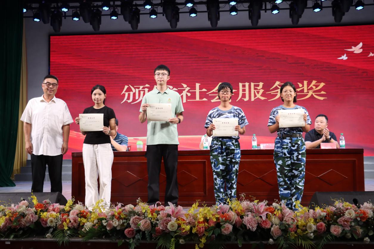 在全场热烈的掌声与欢呼声中,“新生激励奖”“社会服务奖”“军训优秀个人奖”三类奖项依次颁发,50余名新生昂首挺胸走上领奖台,接过属于自己的荣誉证书,脸上洋溢着自豪的笑容,这不仅是对他们过往努力的肯定,更成为了激励全场新生的力量。