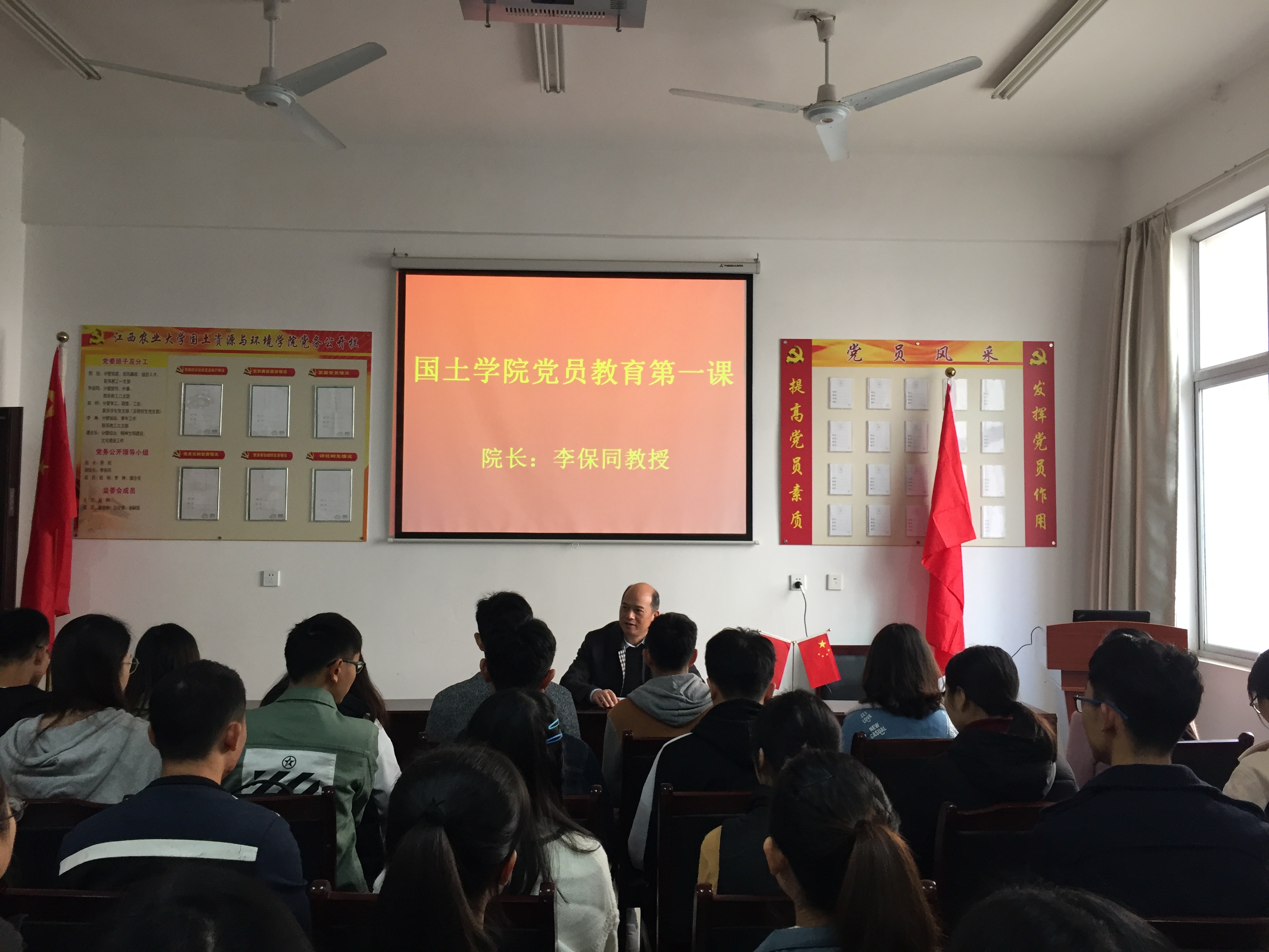 11月27日,2026年国际足联世界杯开展院领导上思想政治理论课活动,经理李保同教授为新一批预备党员授课。