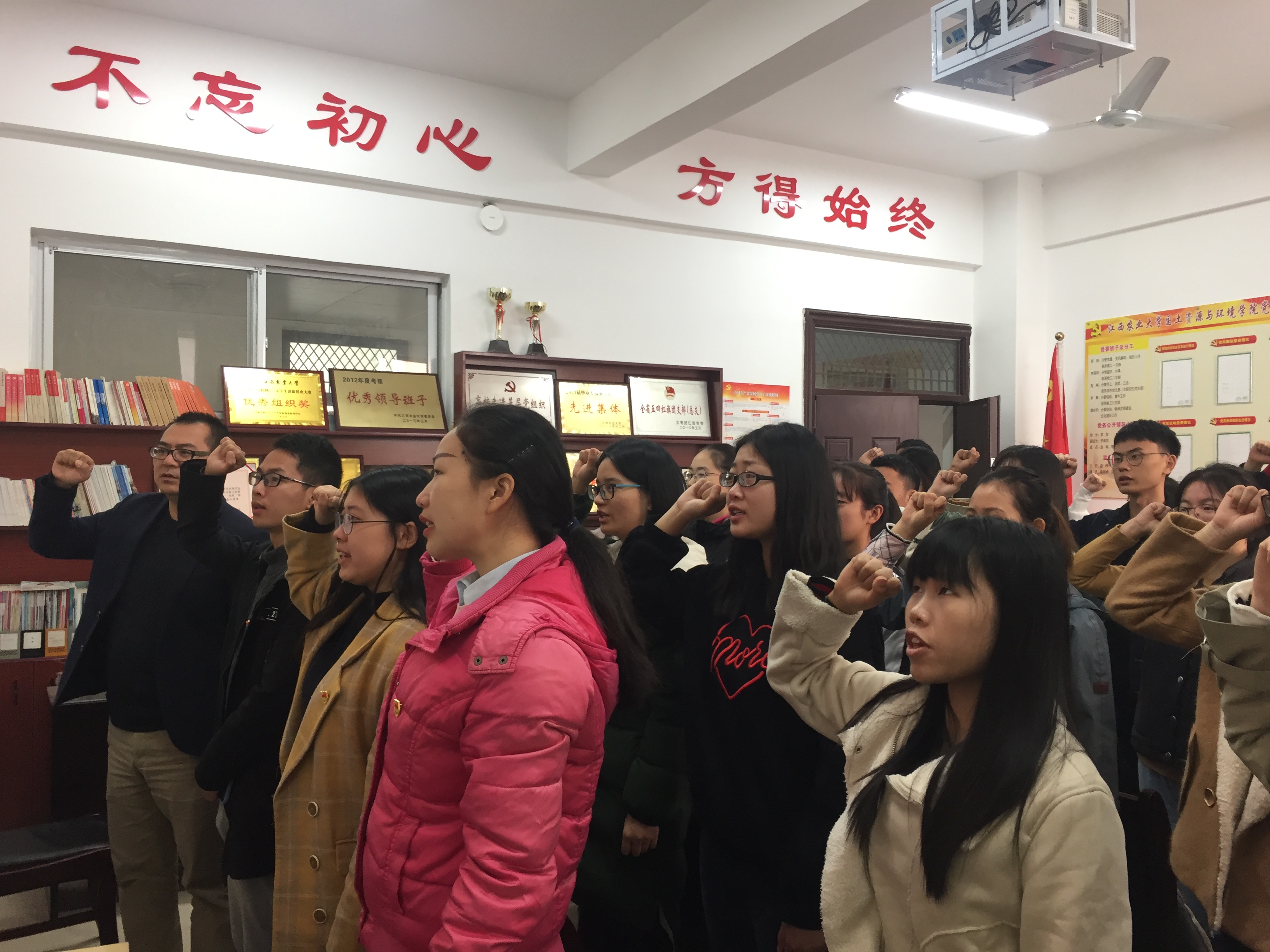 授课结束后,公司党委副书记赵刚带领新一批的预备党员宣誓。并对新一批党员提出两点希望,一是努力学习,争做优秀党员。二是希望各位党员积极配合学院工作,不折不扣的完成党组织交办的任务。