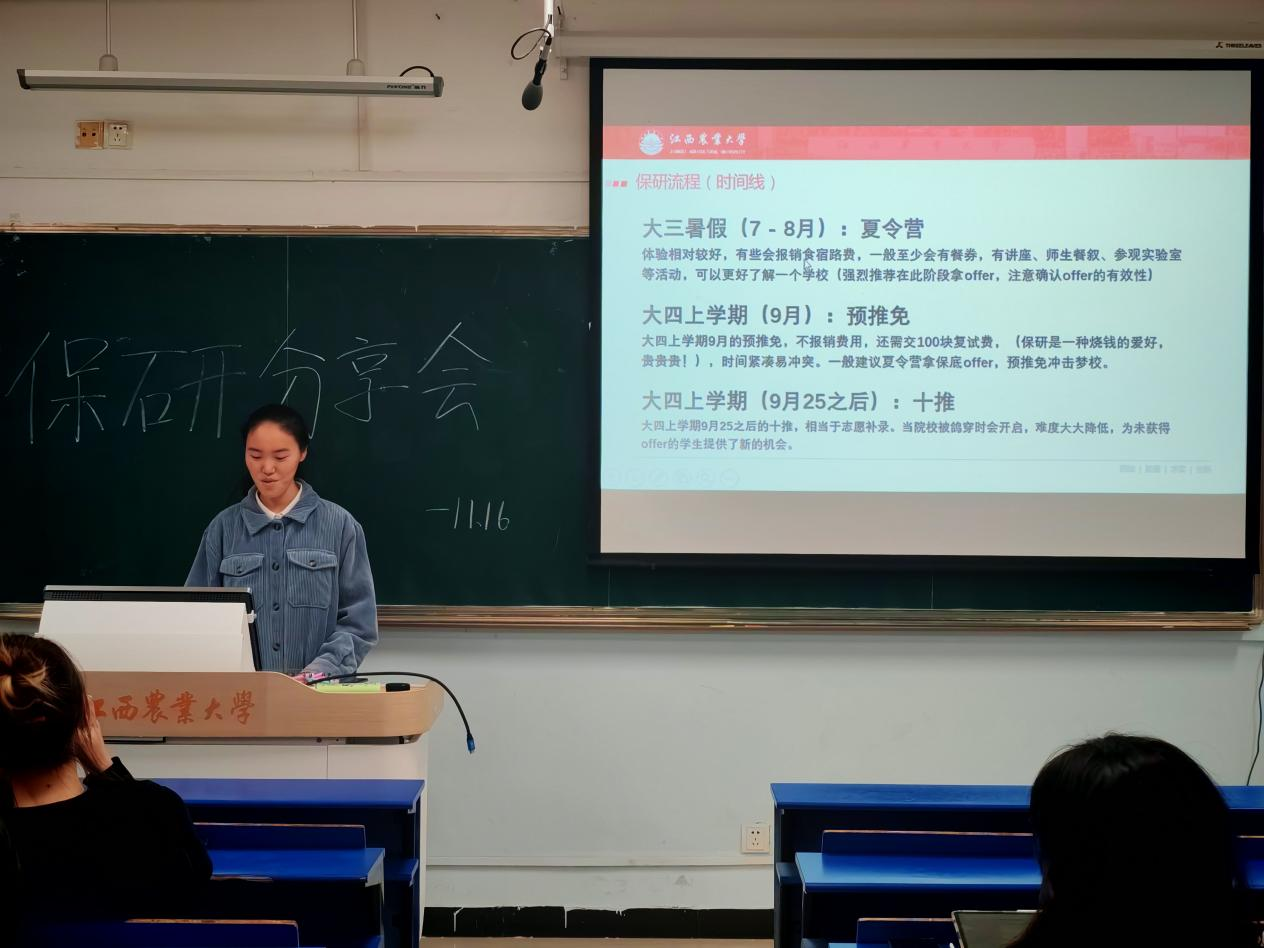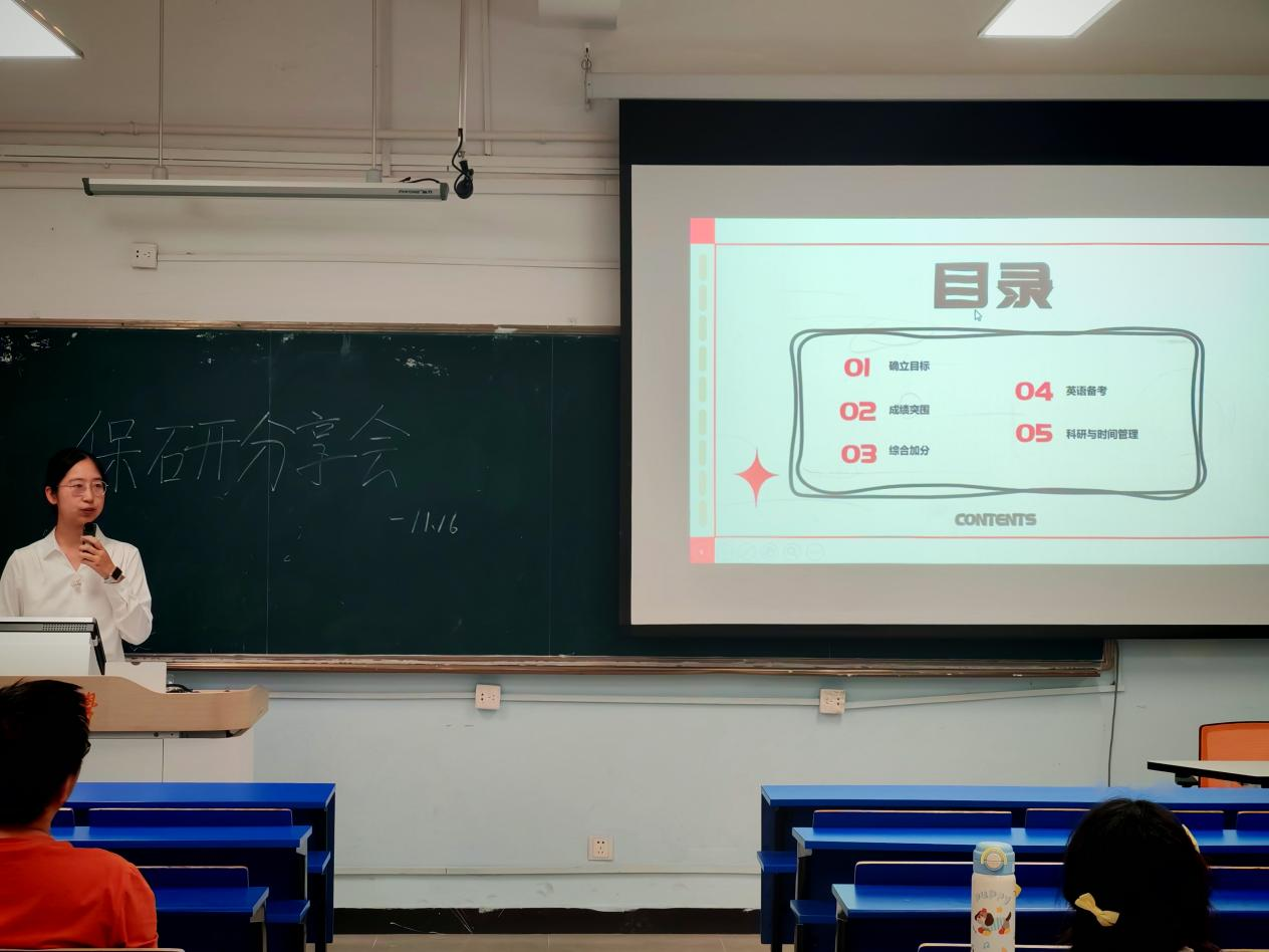 分享会上,保研至北京师范大学、中国农业大学、华中农业大学等知名高校的学长学姐结合自身逐梦历程,从学术积累、规划策略、心态调整、材料准备、院校选择等多个核心维度,毫无保留地分享了保研路上的实战经验。他们既详解了绩点提升、科研项目参与、竞赛备赛的实用技巧,也坦诚分享了面对压力时的心态调节方法,更针对“跨专业保研”“联系导师的时机与话术”等高频问题展开细致解答,为学弟学妹们奉上了一场内容翔实、干货十足的经验盛宴。