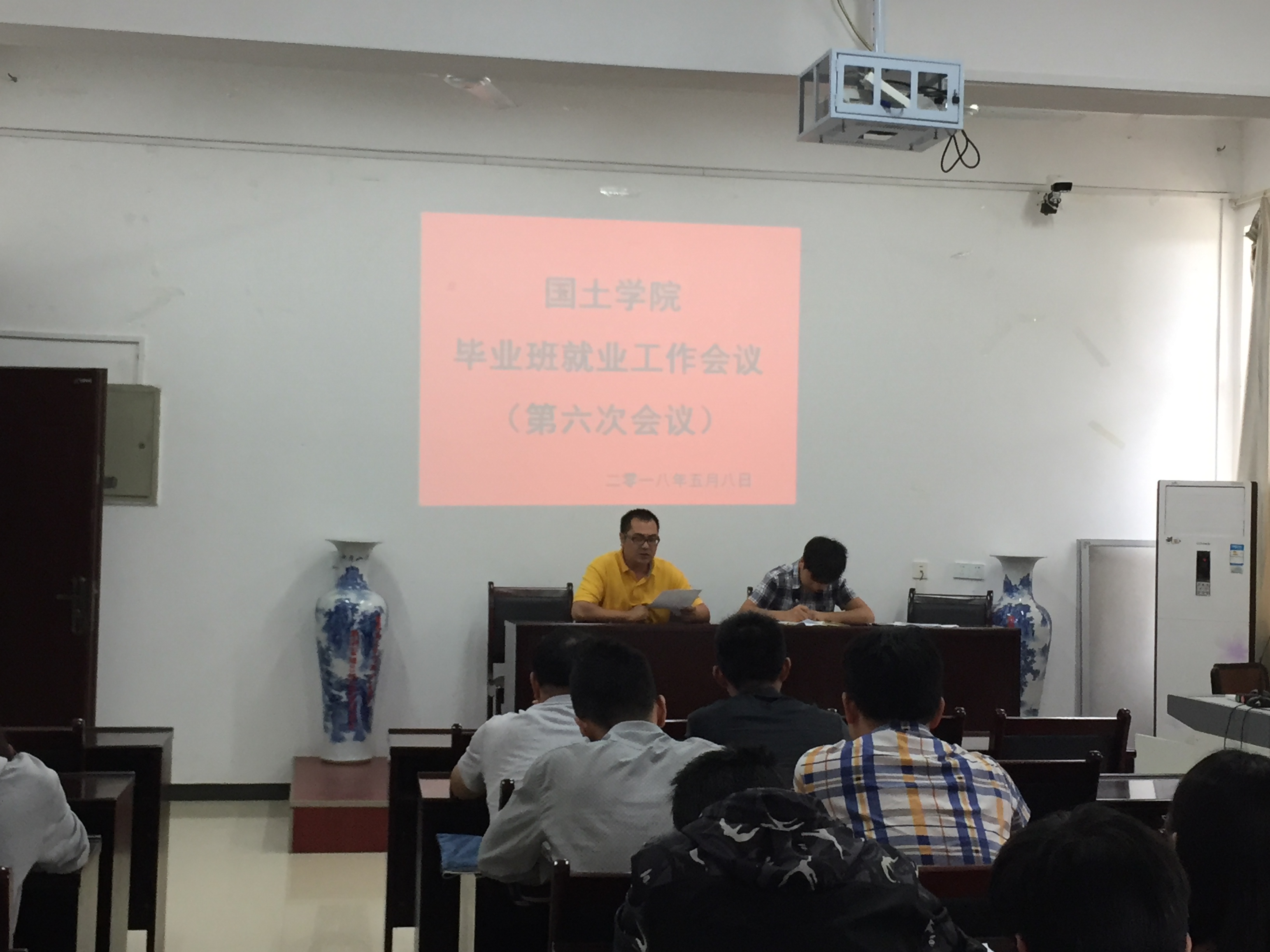 会上首先下发了2018届毕业生工作日程安排表、各班级就业情况统计表和诚信就业承诺书。之后由赵书记就日程安排表和毕业班相关事情安排向参会人员强调: