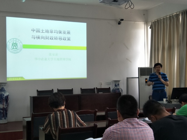 报告中,张安录教授深入浅出地从中国区域经济发展差异和城镇化水平差异出发,分析了我国土地非均衡发展的现状和原因,进而阐述了耕地保护与土地财政的关系,平衡土地发展与土地保护的跨区域横向财政转移支付补偿的构建。同时张教授与同学们亲切交谈,深入交流,积极回答同学们的问题。整场报告内容丰富、学术氛围浓厚,讲解通俗易懂,获得老师和同学的一致称赞。