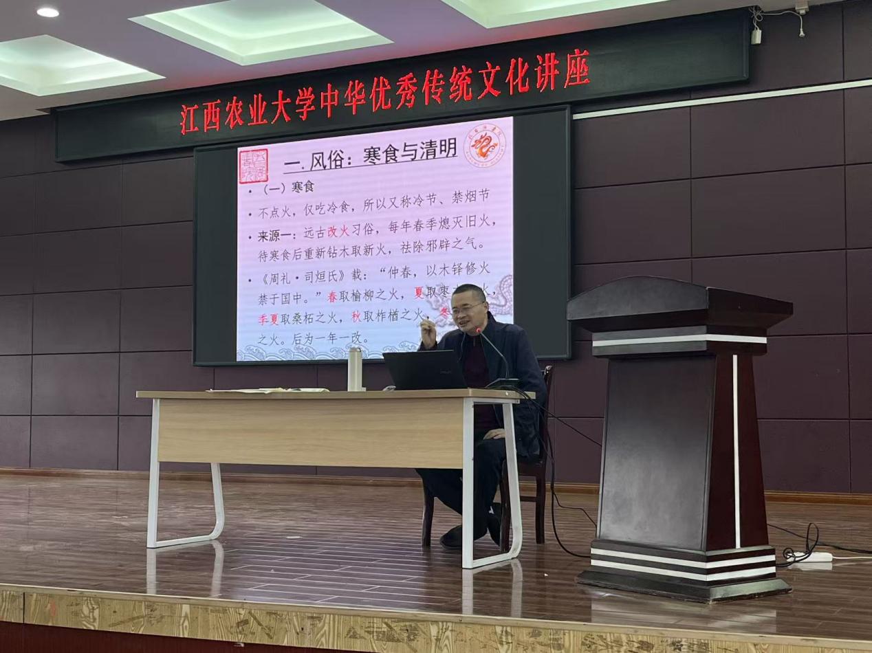 讲座中,石初军引经据典,从寒食节的起源讲到清明节的习俗变迁,深刻阐释了清明节“知恩报本”的文化内核。“慎终追远,民德归厚”,清明节不仅是踏青春游的节日,更是祭祀先祖、缅怀英烈的庄严时刻。通过对《孝经》《论语》的解读,指出孝悌是德行的根本,而“移孝作忠”则是家国情怀的升华,与当代传承红色基因的精神高度契合。