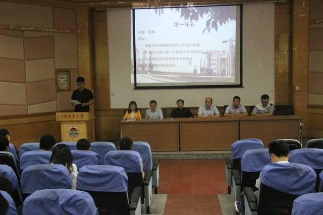 会议共分为两个环节。第一环节中,教学秘书何维佳老师就教学有关工作、毕业生离校手续办理等事宜进行布置;毕业生代表土管1101班谷文学同学宣读《毕业倡议书》,做了将“严格尊守校规校纪,做一名文明老员工”的庄重承诺。毕业班班主任代表张嶔老师进行发言,他号召全体毕业生要珍惜离校前的时光,珍视自己青年老员工的身份,为自己老员工涯划上圆满句号。